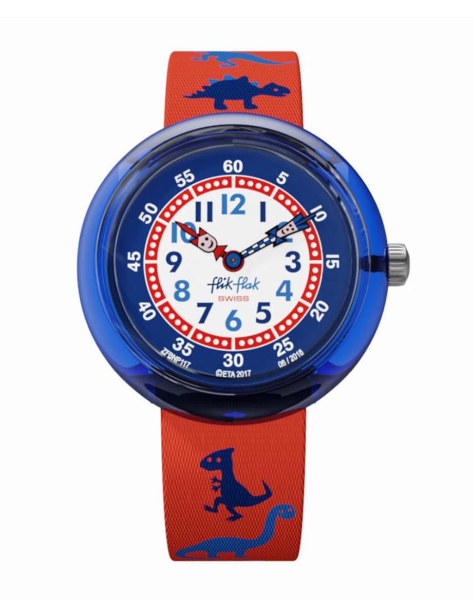 Dit kinderhorloge van Flik Flak met referentie DINOSAURITOS FBNP117 is machine wasbaar op 40°C. Het horloge heeft een blauwe kunststoffen kast. De wijzerplaat heeft een wit midden met blauwe rand. De cijfers zijn lekker groot zodat uw kleintje het uur goed kan lezen.