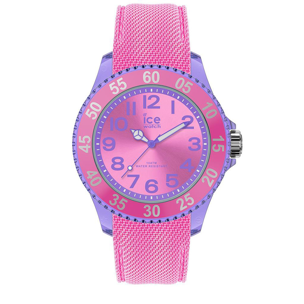 Dit ICE Cartoon horloge 017729 heeft een roze kleur met een paarse kast. De getextureerde rubber siliconen band heeft ook een roze kleur.