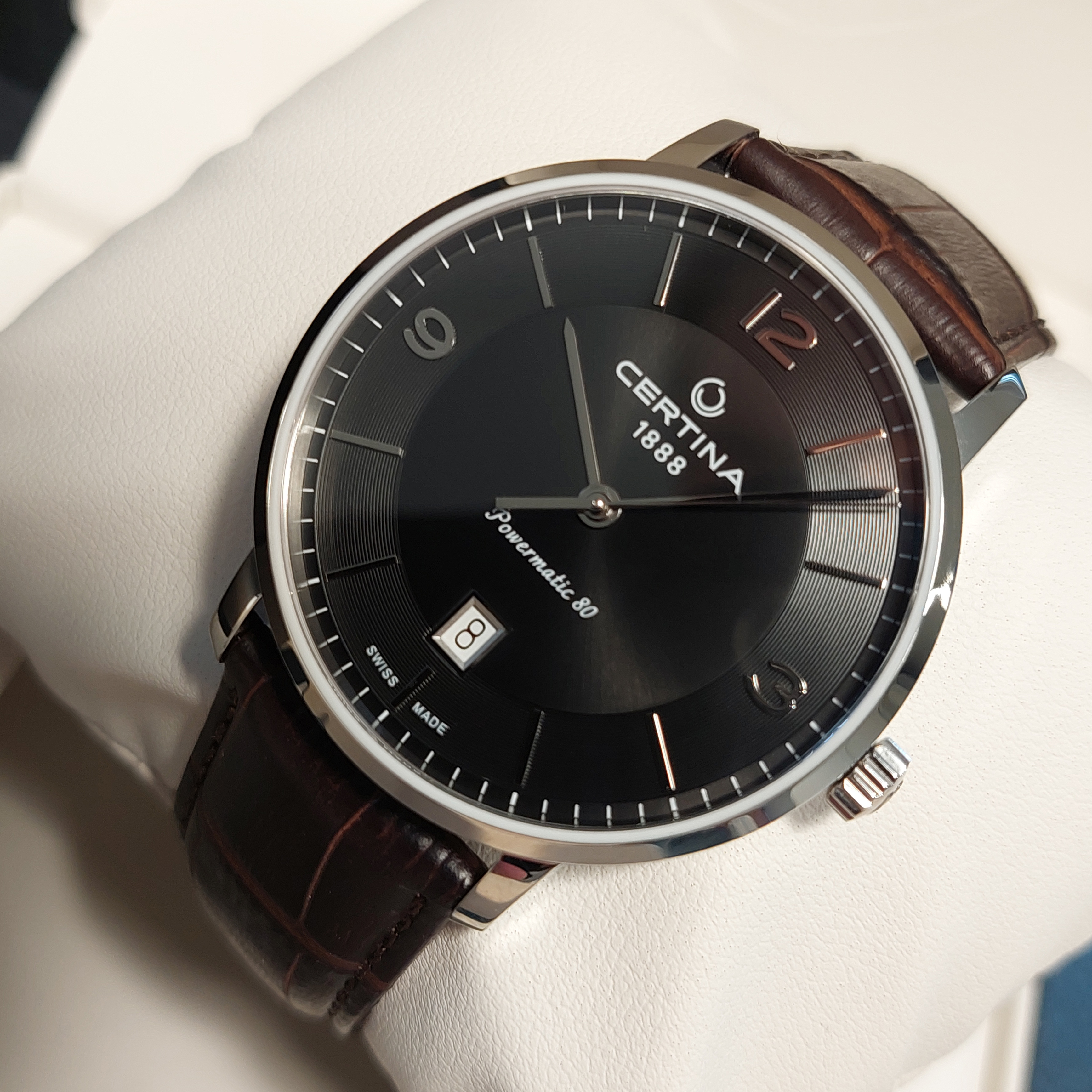 Het binnenwerk, de motor van het horloge is een automatisch Certina Powermatic 80 gangwerk met een gangreserve van 80 uren.