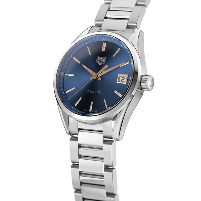 Dit model uit de legendarische Carrera collectie is een sportief en origineel dames model. Dit Dames Tag Heuer Carrera horloge met de referentie WBK1312.BA0652 heeft een blauwe wijzerplaat met een datum op 3 uur. Een krasvrij saffierglas beschermt deze unieke wijzerplaat. De kast op een 36 mm is vervaardigd uit staal en wordt gepresenteerd op een staal armband.