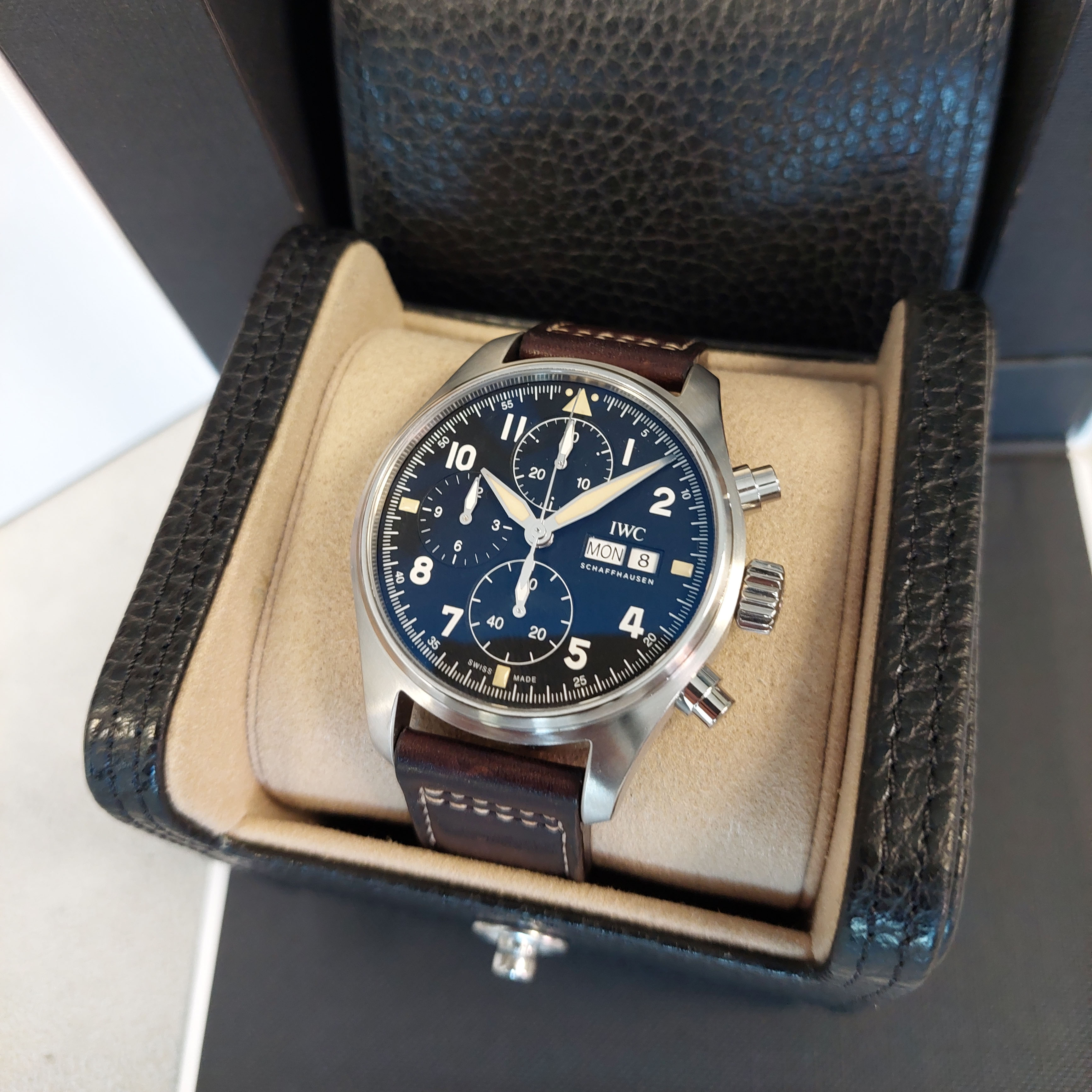 - Alle documenten en de orginele IWC box zijn aanwezig.