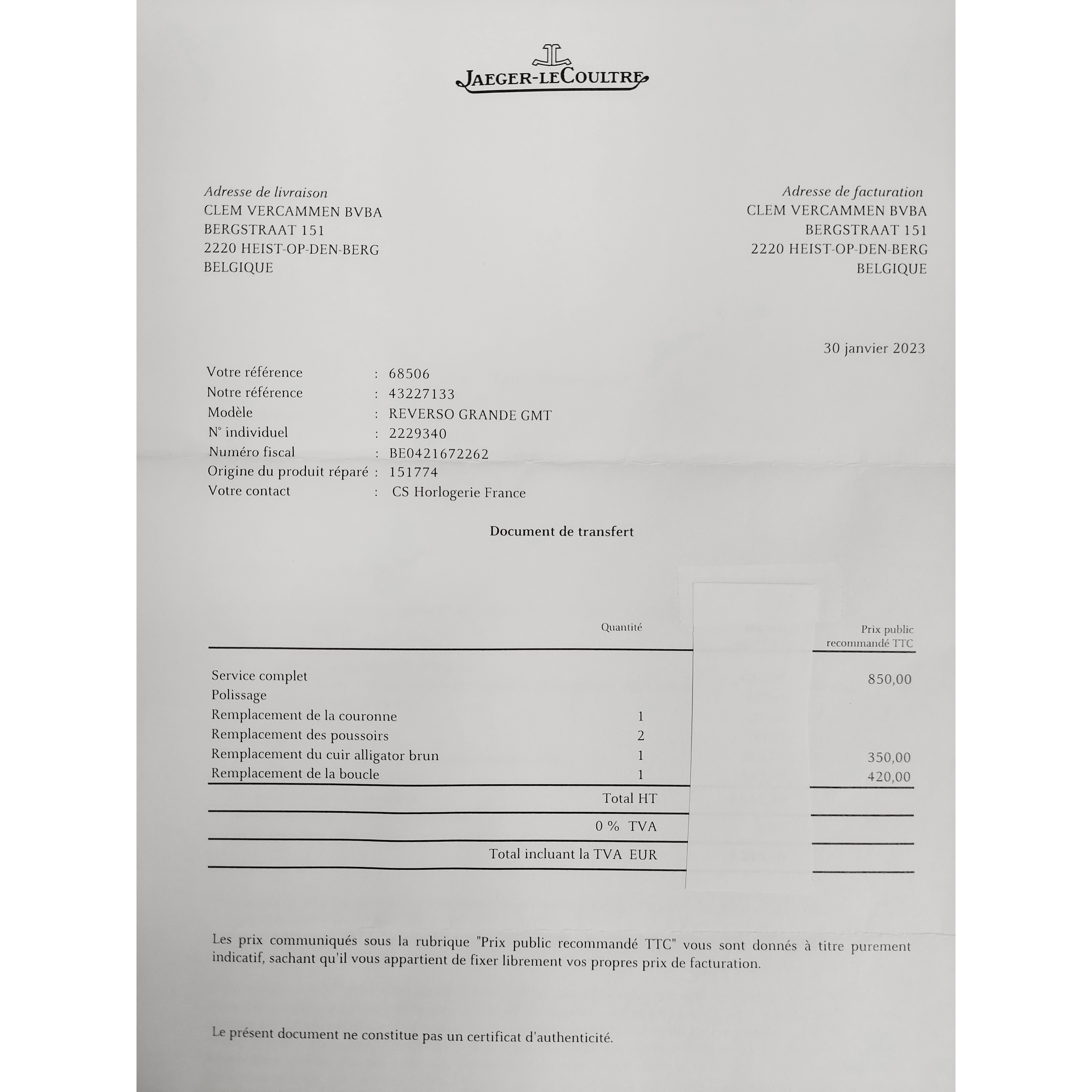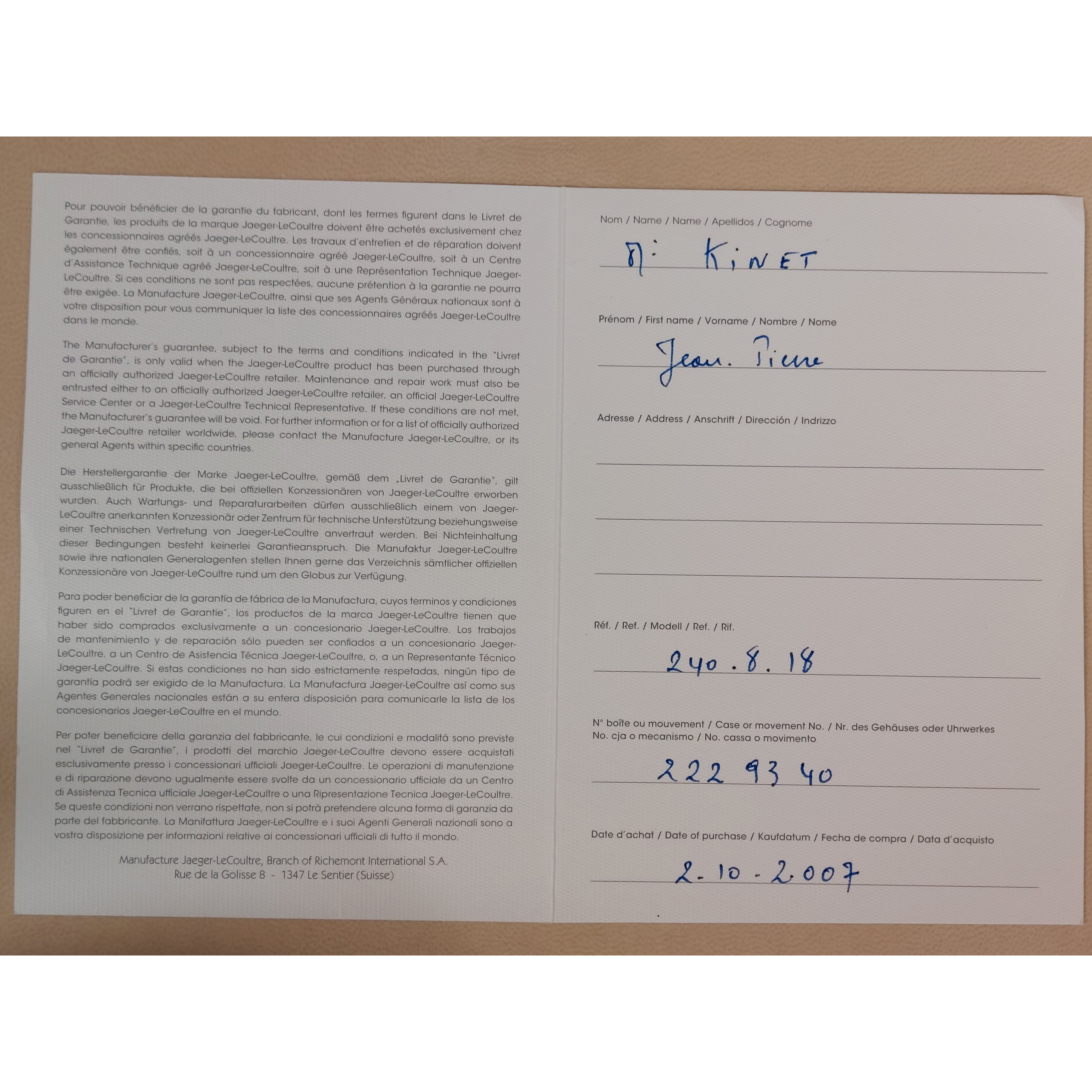 - Jaeger-LeCoultre box en documenten zijn aanwezig