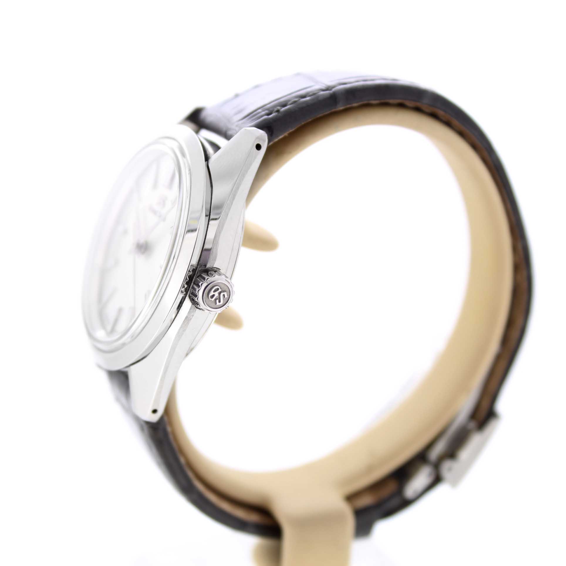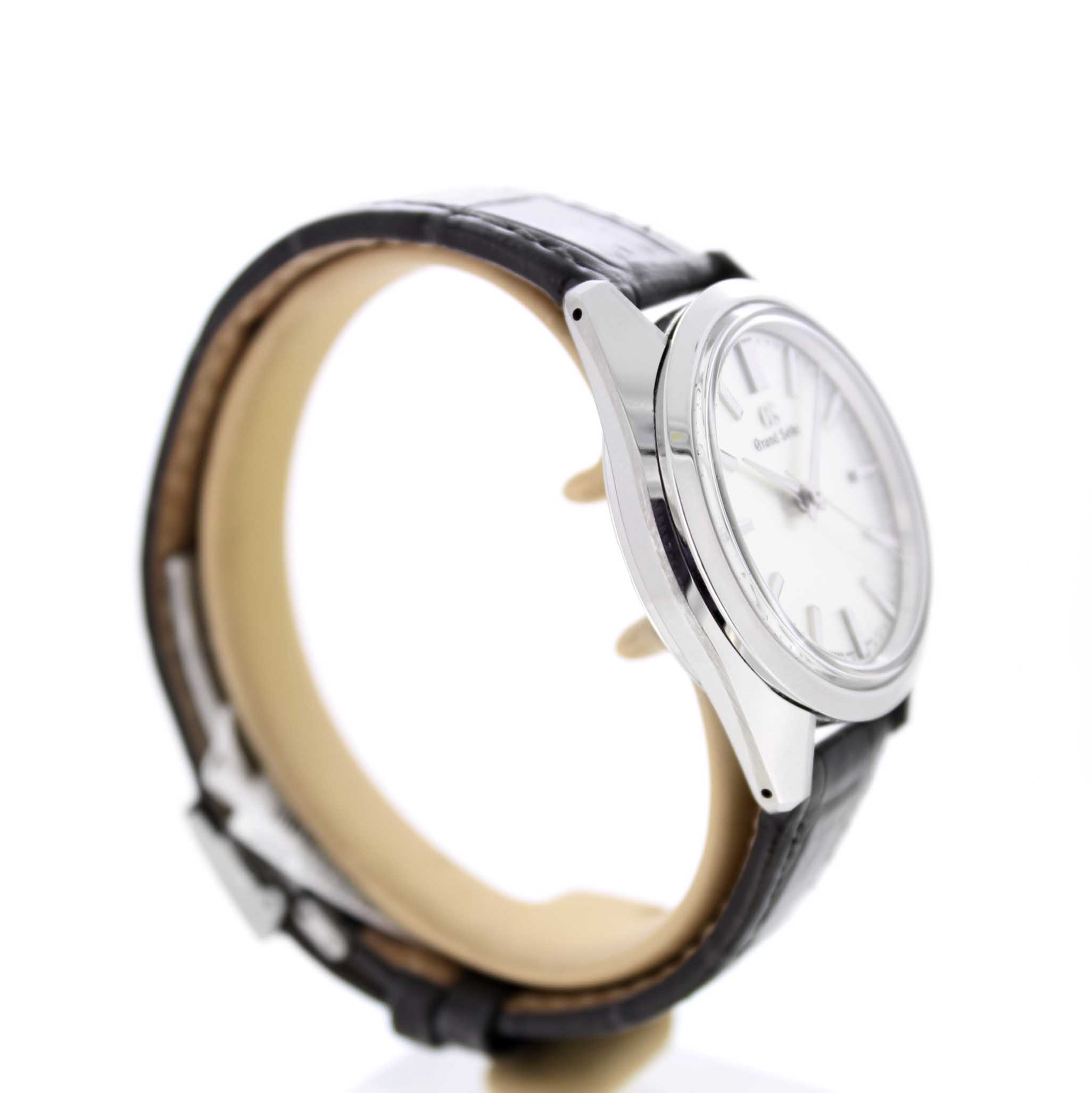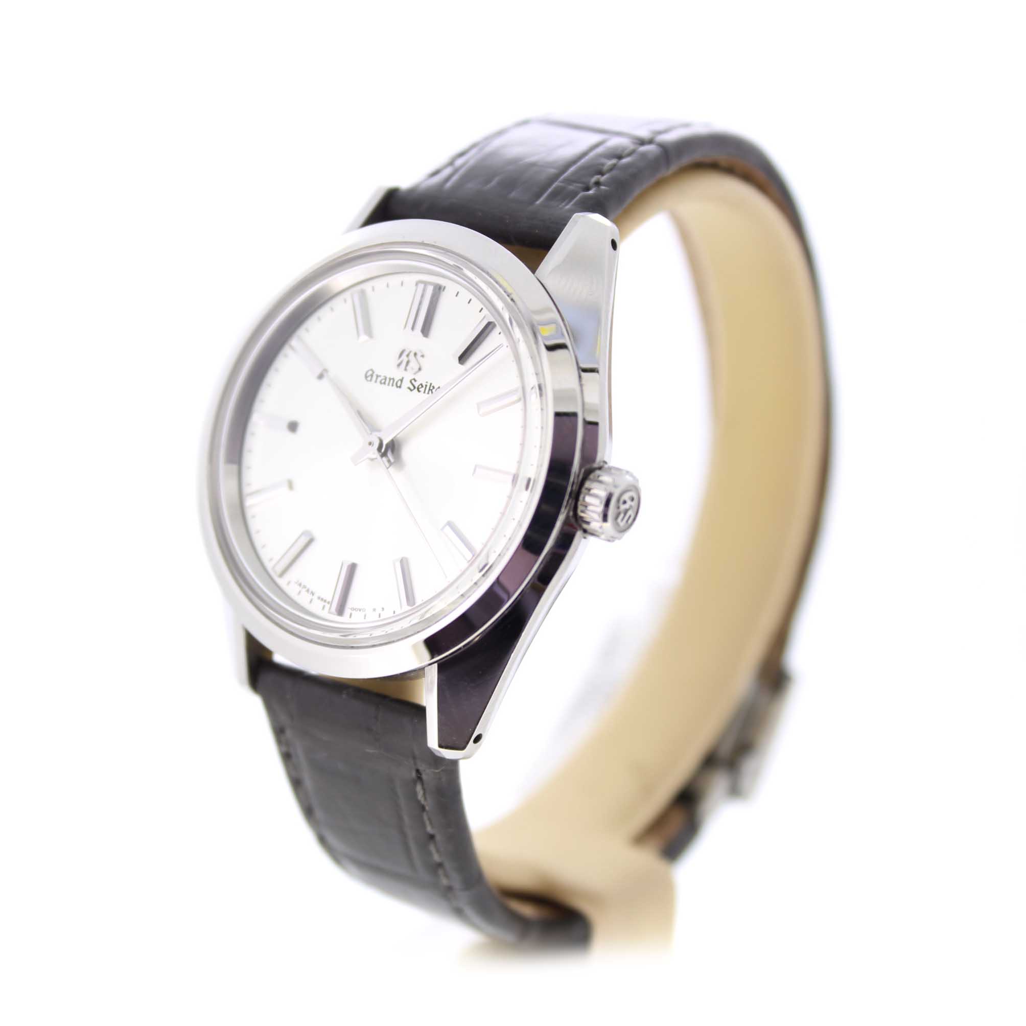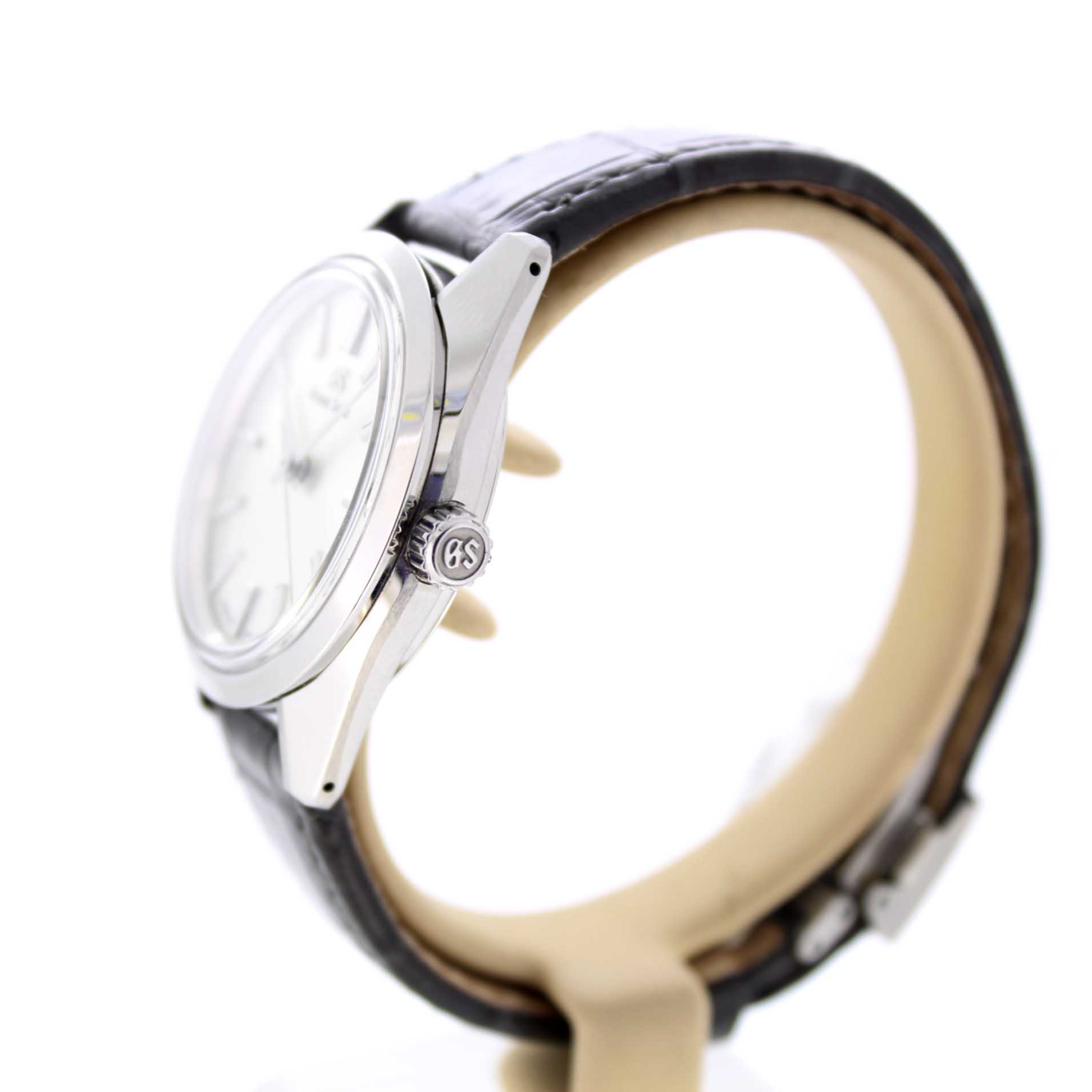Het Grand Seiko Heritage Collection SBGW291G horloge is tweedehands te koop. Het horloge is vervaardigd uit een 35mm staal kast en grijs leren band. Het horloge beschikt over een zilverkleurige wijzerplaat.