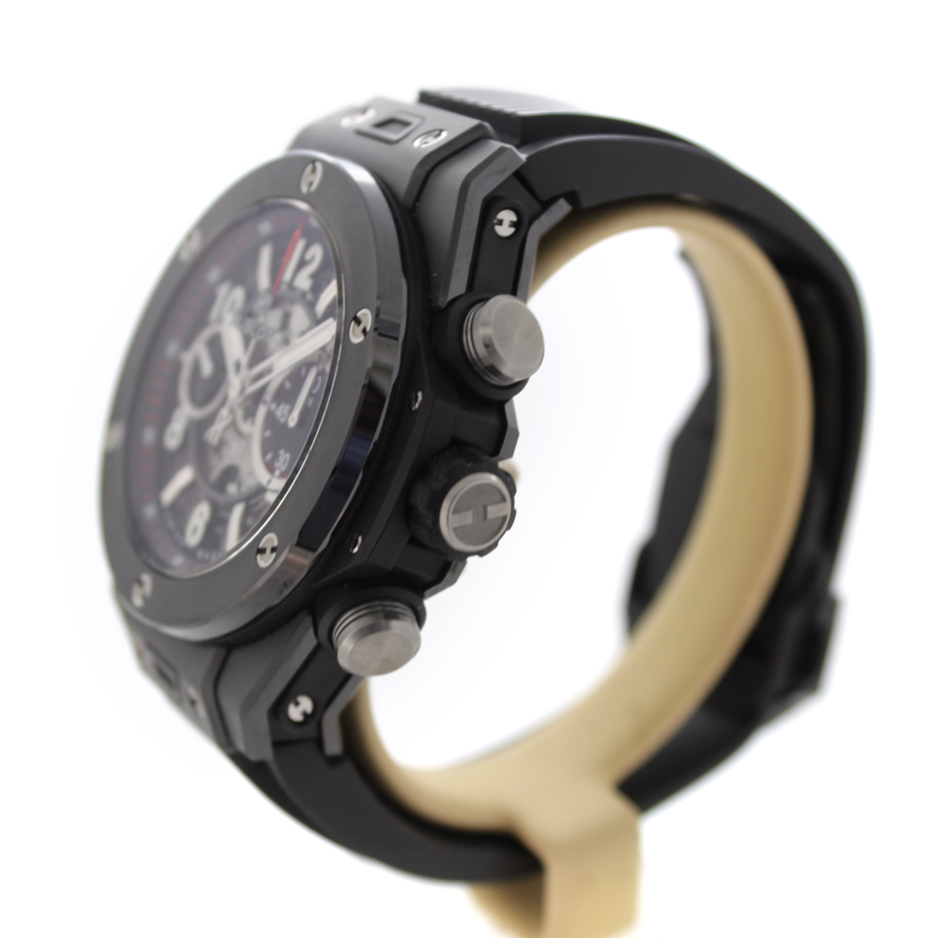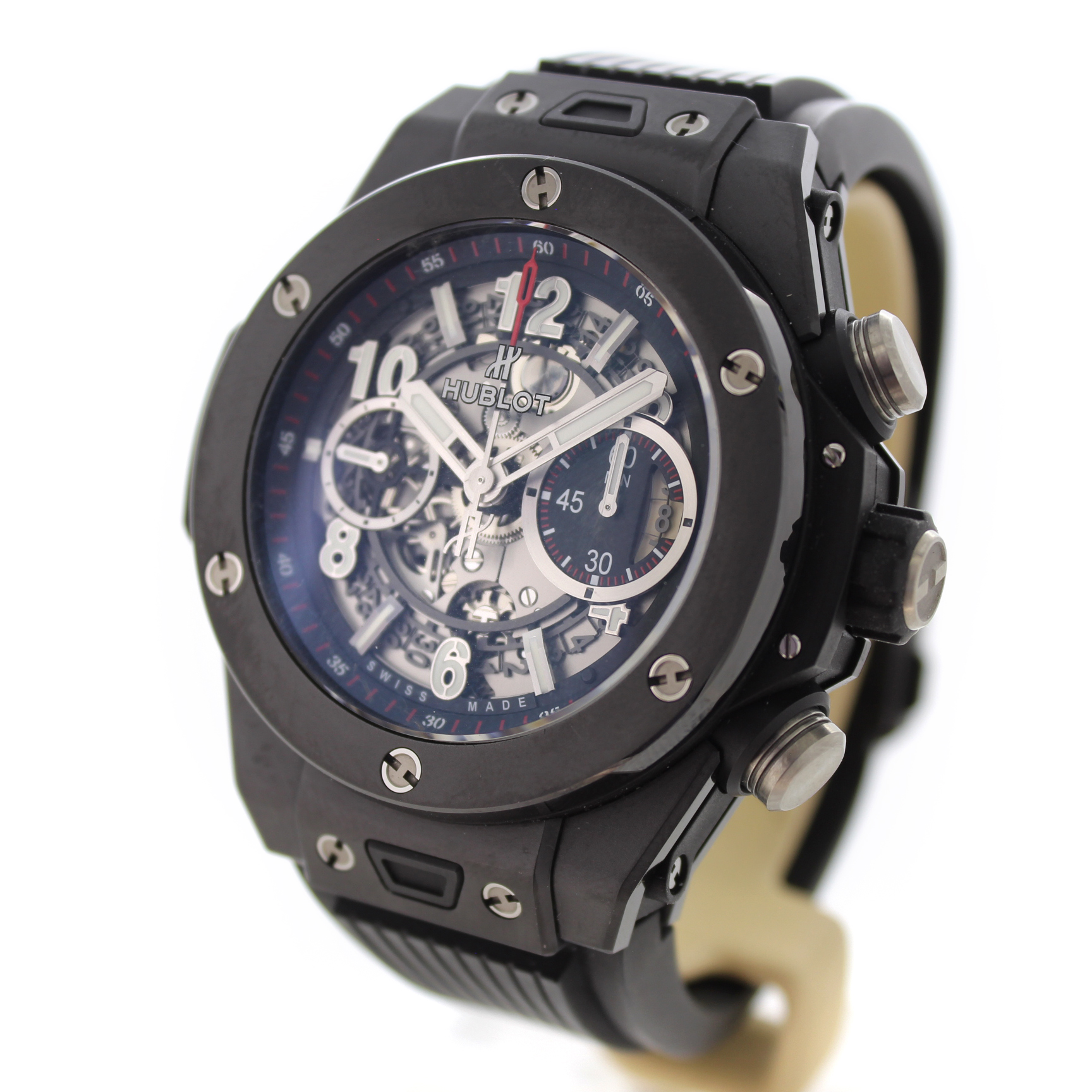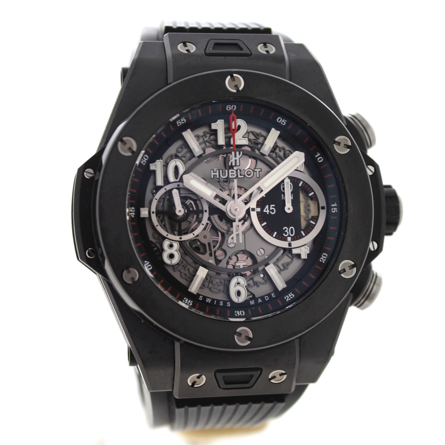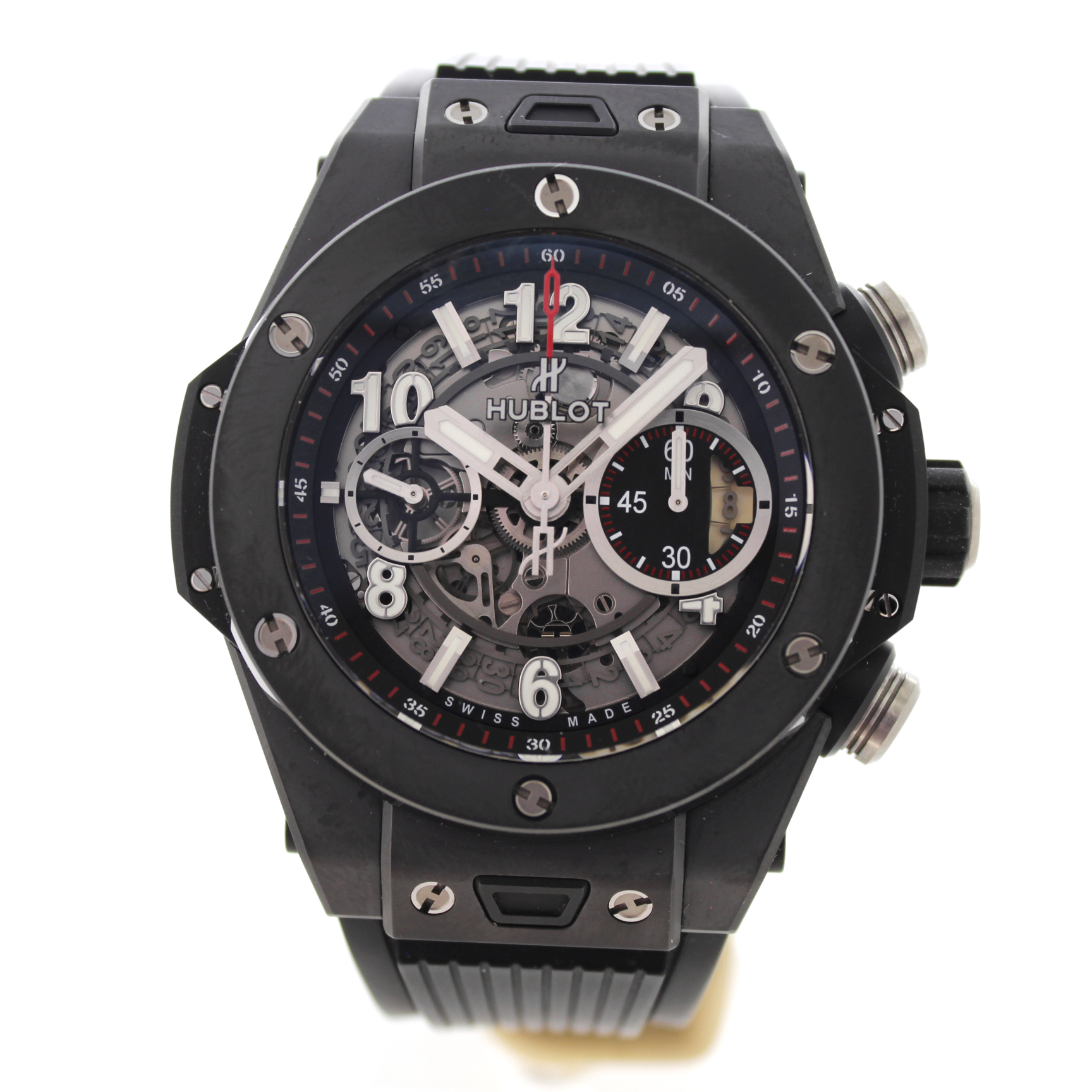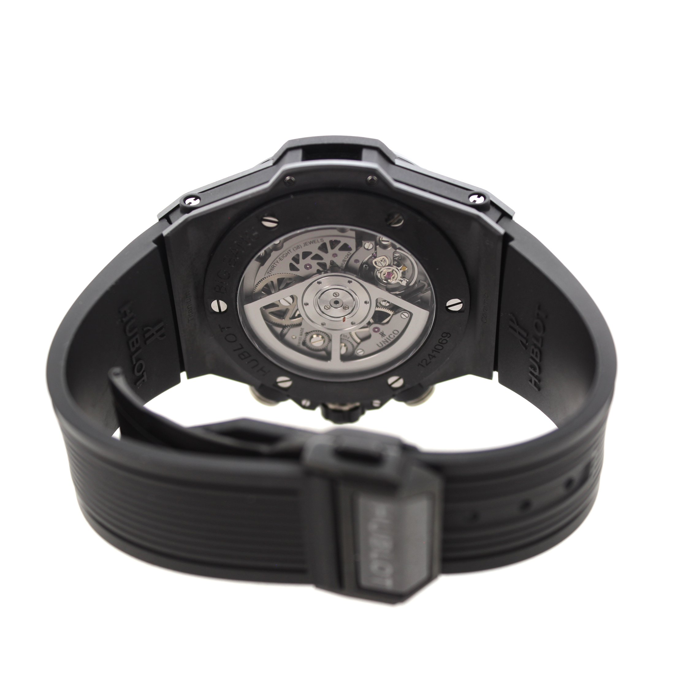 De Hublot Big Bang Unico Black Magic 411.C1.1170.RX is tweedehands te koop in onze zaak. Het Hublot horloge heeft een 45.5 mm keramiek kast en zwart rubberen band.