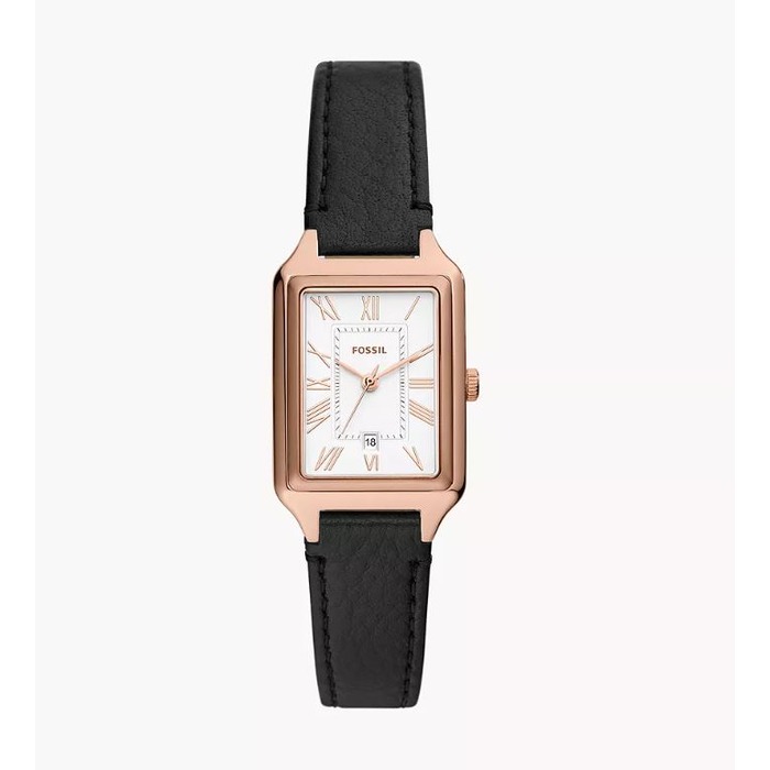 Dit Fossil horloge met referentie ES5310 is een dameshorloge uit de Raquel collectie. Het uurwerk is vervaardigd uit een 23mm rosé kleurige staal kast en een zwart lederen armband. Het horloge heeft een witte wijzerplaat met een datum aanduiding op 3uur.