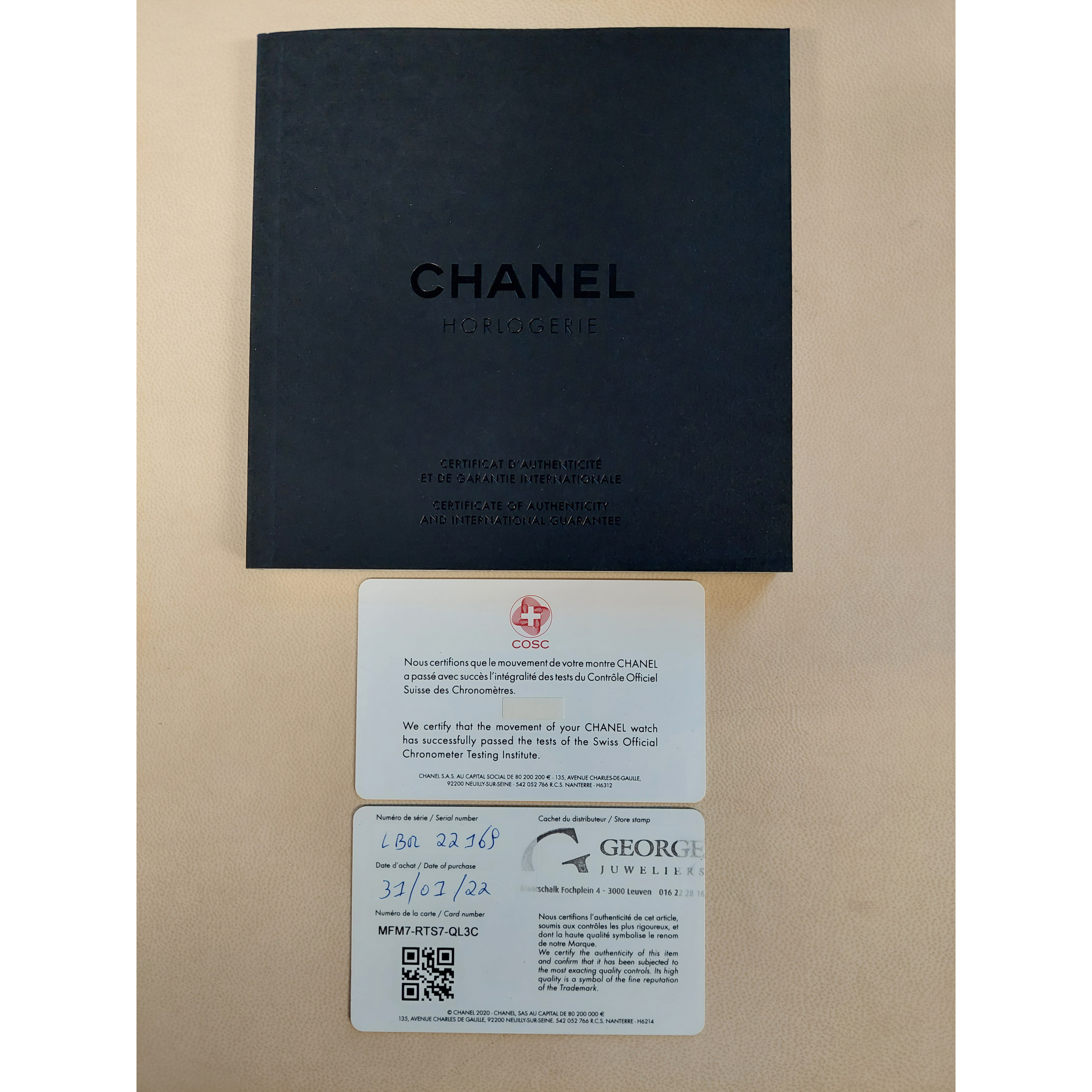 - De Chanel box en documenten zijn aanwezig.