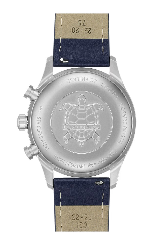 Het Certina horloge uit de collectie DS-Pilot met de referentie C024.617.16.042.00 heeft een 43mm staal kast en blauw leren armband. Een krasvrij saffierglas beschermt de unieke blauwe wijzerplaat en heeft een datum aanduiding op 3uur.