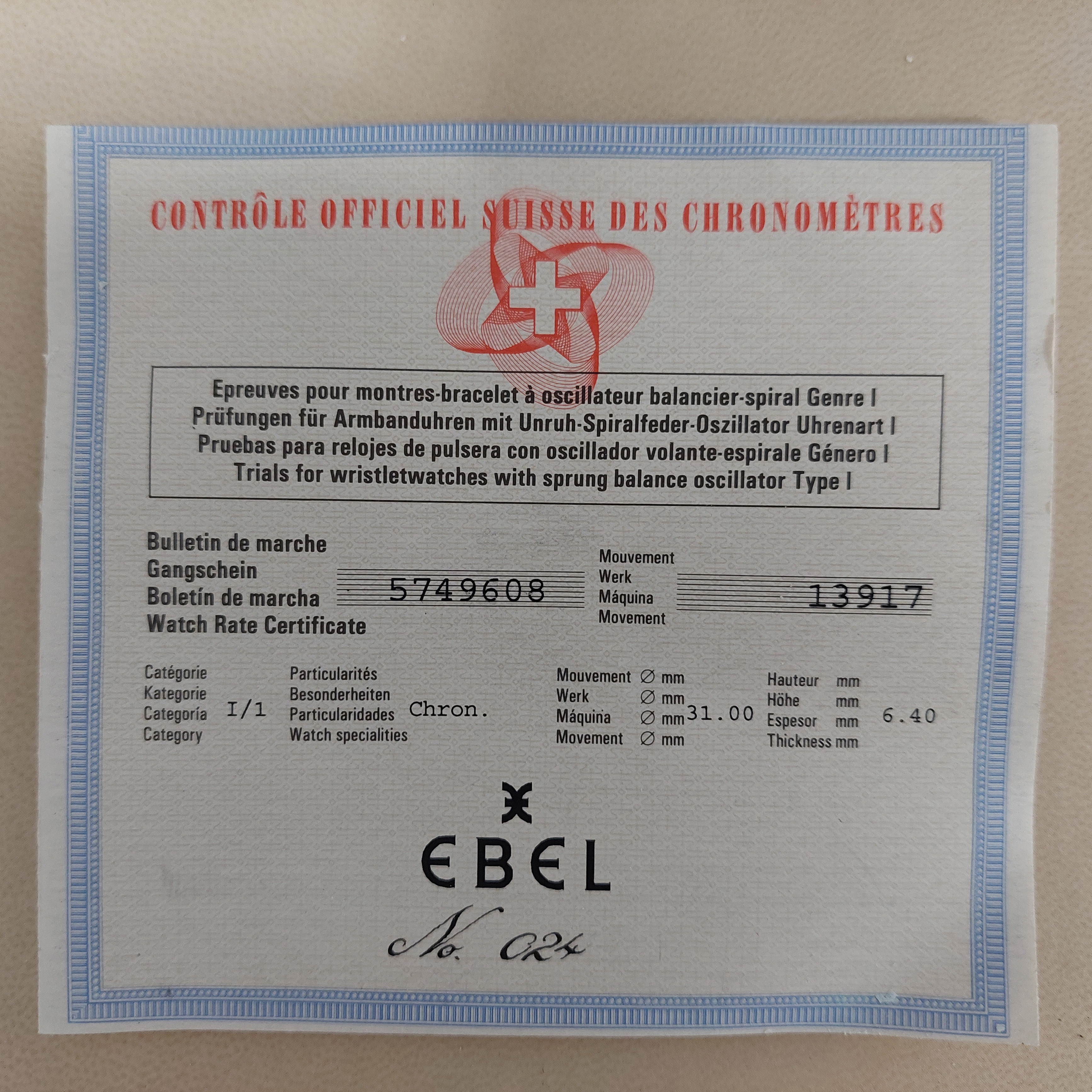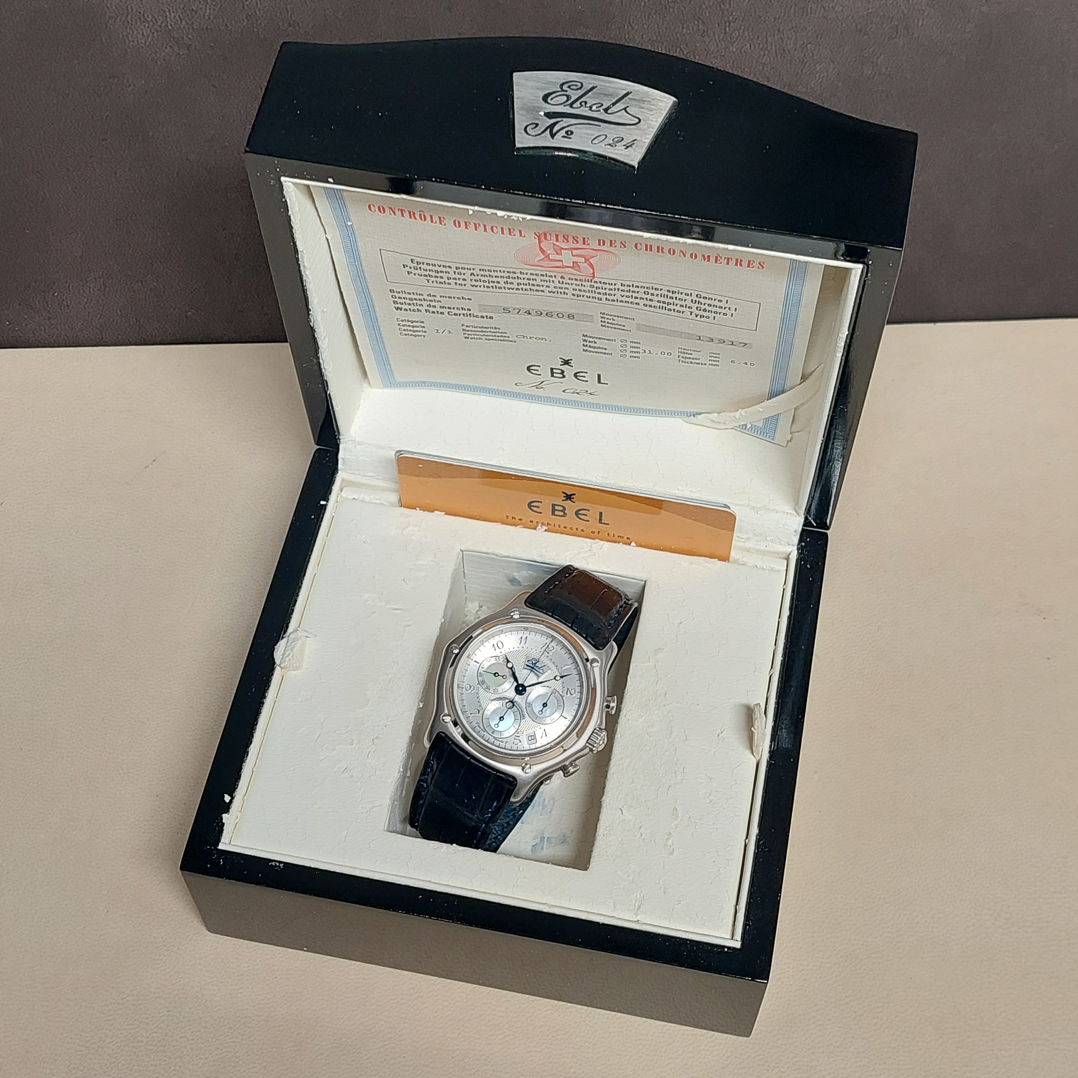 - De Ebel box en documenten zijn aanwezig.