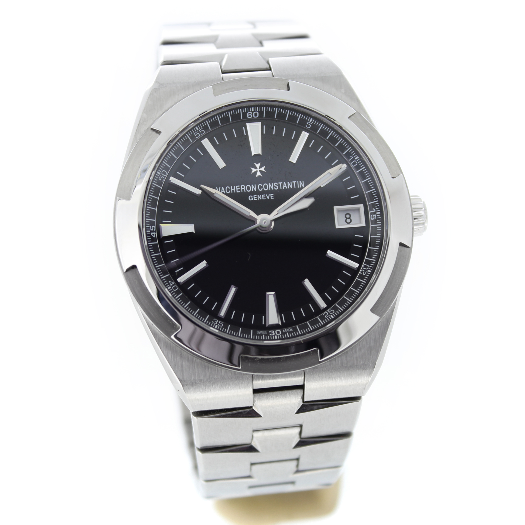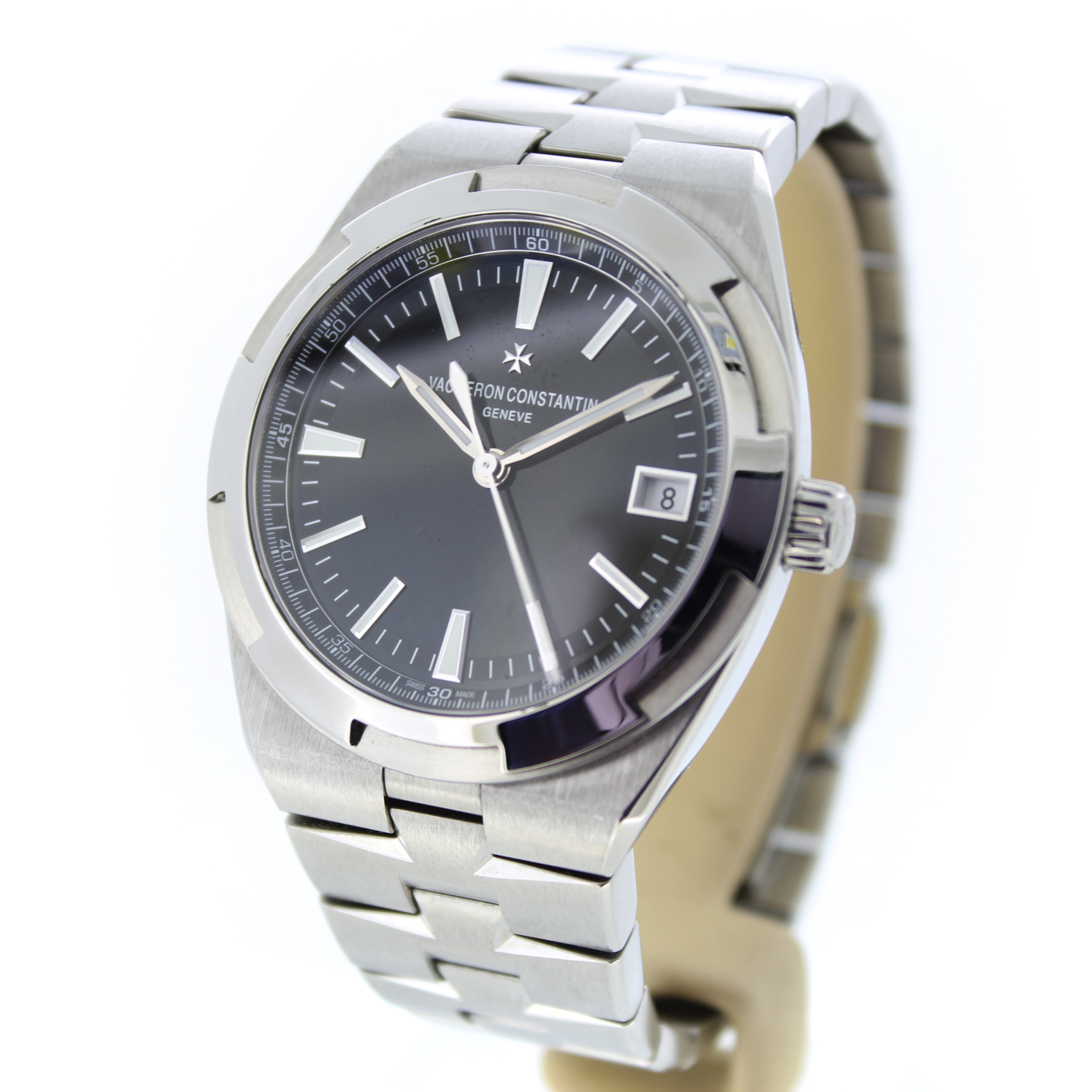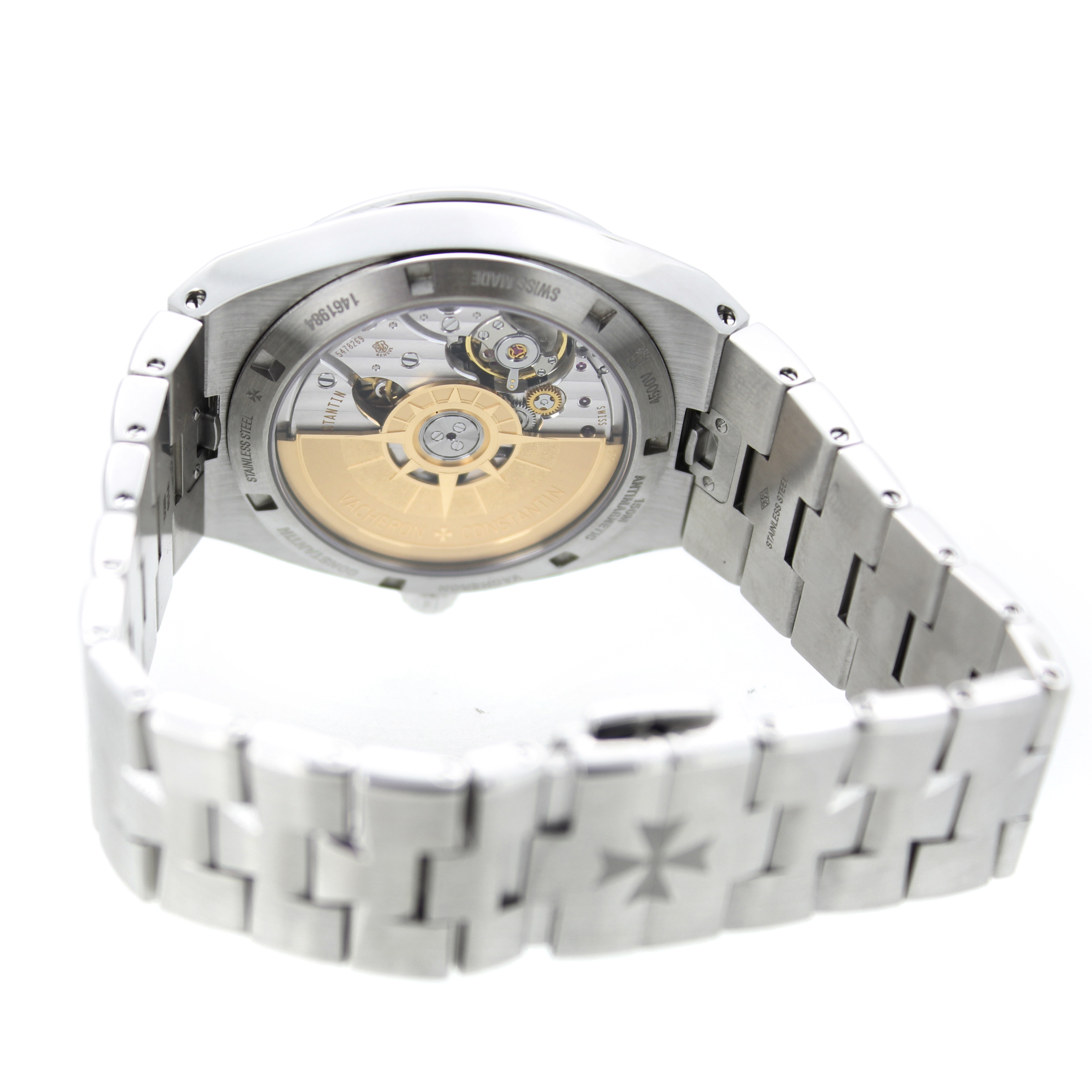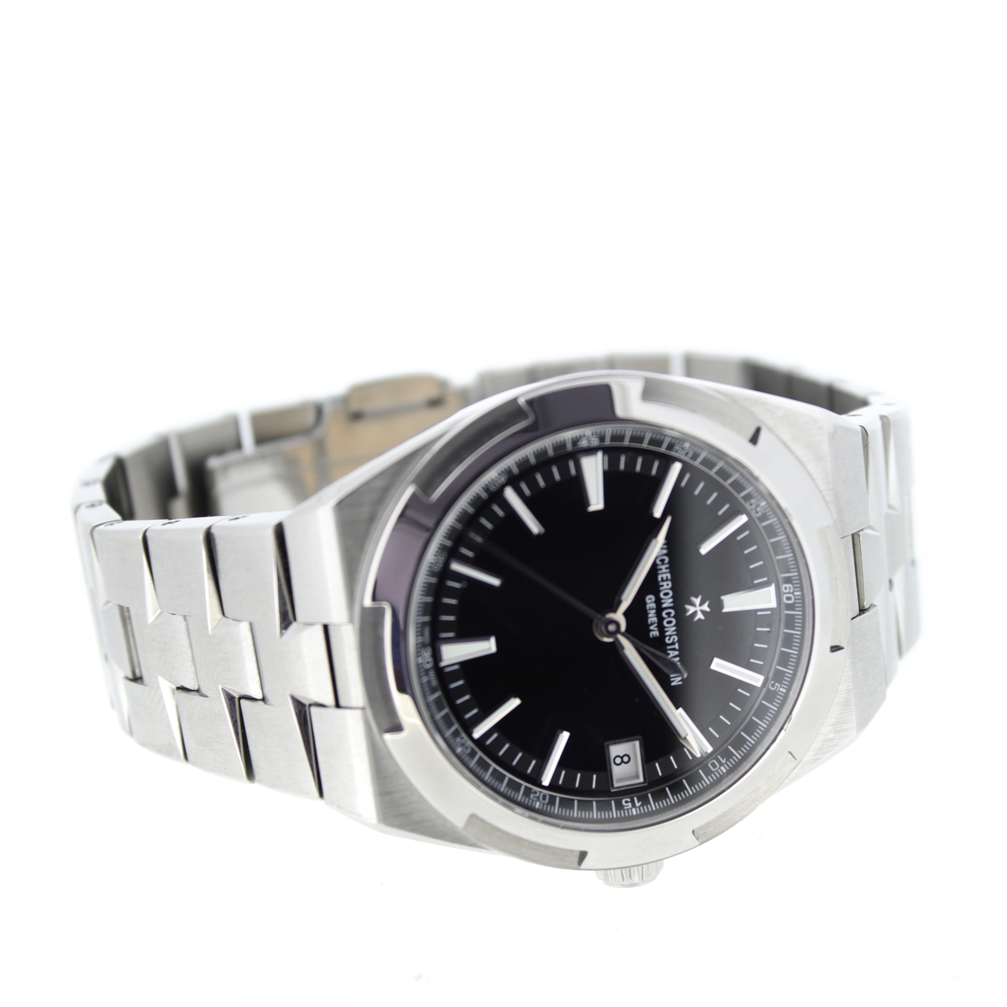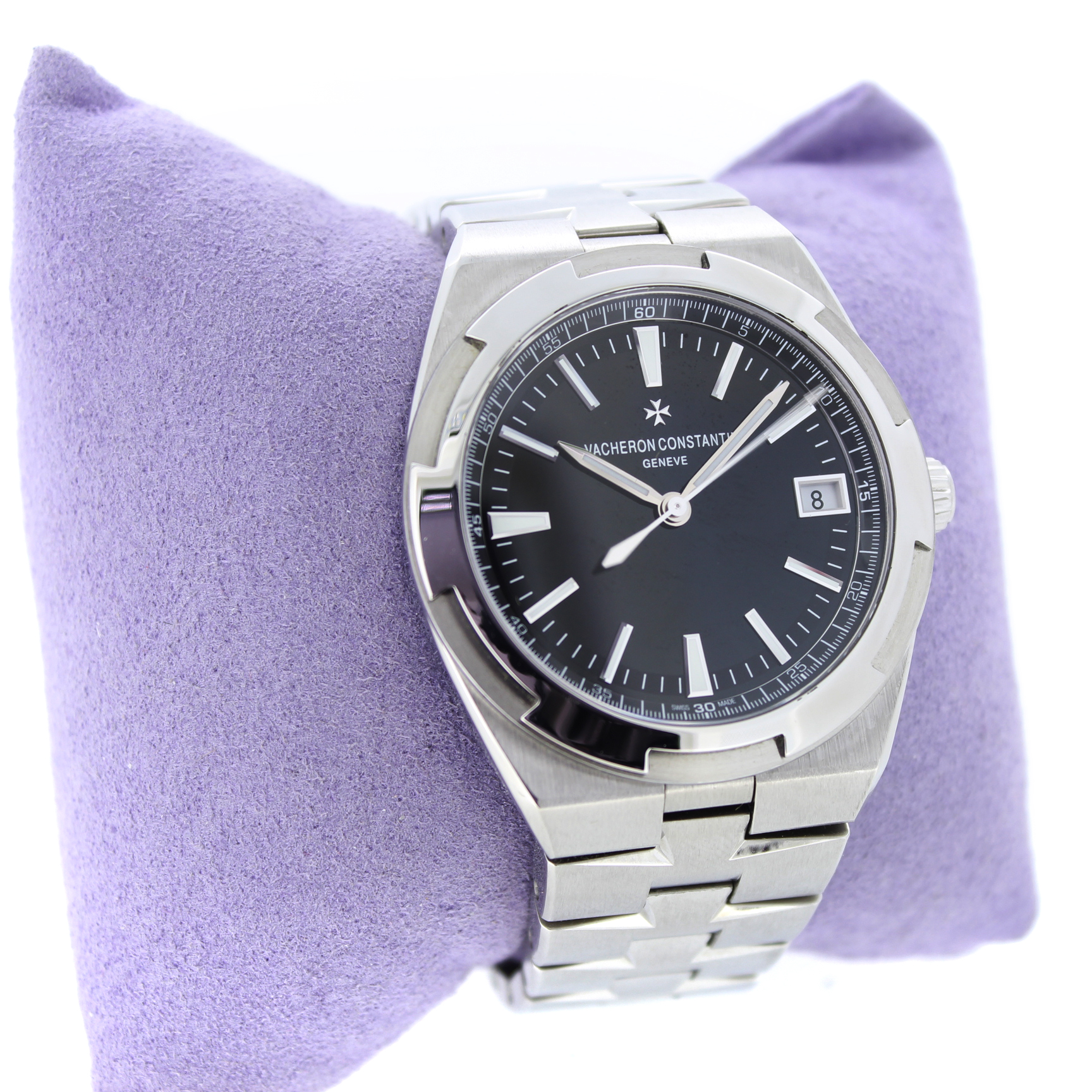 Dit exclusief pre-owned heren Vacheron Constantin Overseas 4500V/110A-B483 horloge heeft een 41mm staal kast. Het Vacheron horloge beschikt over een zwarte wijzerplaat.