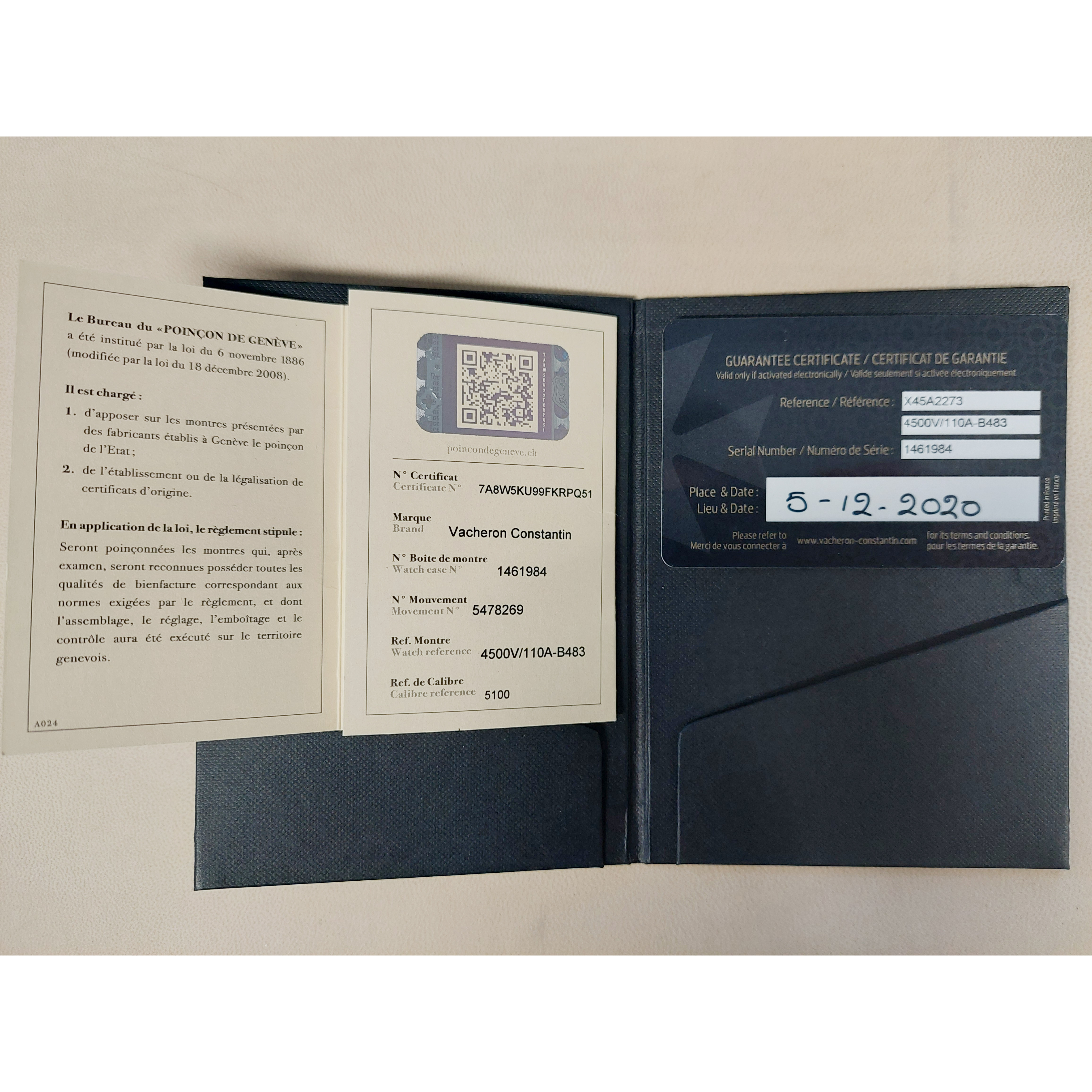 - Alle documenten en de Vacheron Constantin box zijn aanwezig.