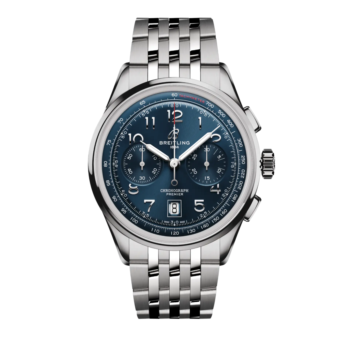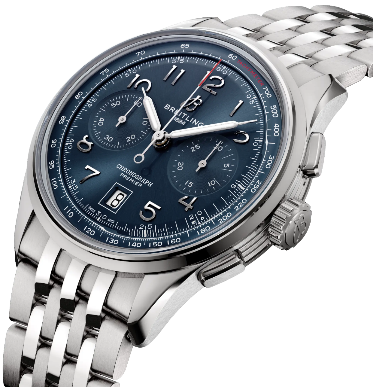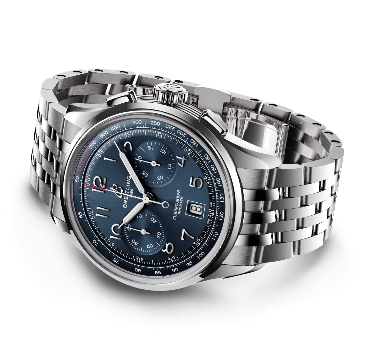 Begin jaren veertig droomde Willy Breitling al van een tijd na de oorlog, waarin nut plaats zou maken voor ongebreideld optimisme. Hij begon met het ontwerpen van een chronograaf die functioneel zou zijn, maar ook onmiskenbaar elegant en oneindig draagbaar - in zijn woorden, "het onmiskenbare stempel van onberispelijke smaak". Hij noemde deze nieuwe lijn de Premier. Om de moderne Premier te creëren, behield Breitling kenmerkende vintage-Premier details, waaronder de gladde vaste lunette, de wijzerplaat met twee registers, gestroomlijnde rechthoekige drukkers en toegepaste Arabische cijfers.
