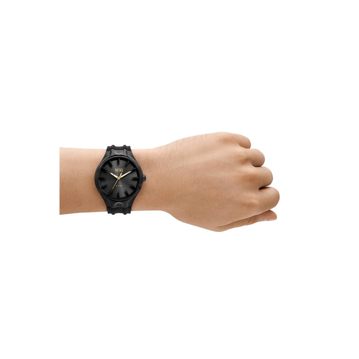 Dit Diesel horloge met referentie DZ2217 is een herenhorloge uit de STREAMLINE collectie. Het Diesel uurwerk is vervaardigd uit een 44mm zwartkleurige staal kast en een zwart siliconen armband. Het horloge heeft een zwarte wijzerplaat, welke beschermd wordt door een mineraalglas.