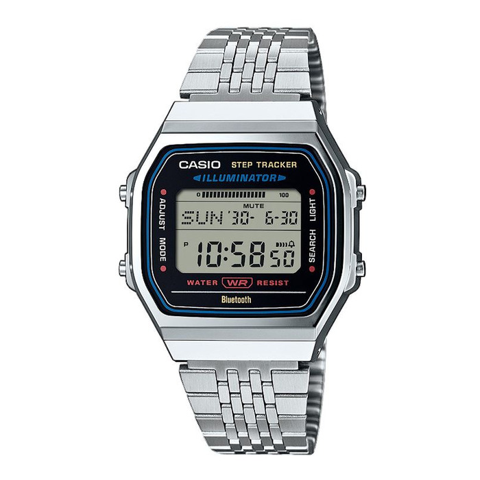 Casio lanceert de gloednieuwe retro en metalen digitale ABL-100WE serie met Bluetooth smartphone link en een stappenteller. De Bluetooth-functionaliteit omvat automatische tijdsaanpassing, horloge-instellingen en stappenteller, wanneer verbonden met de Casio Watches smartphone-app. Het horlogedisplay toont het dagelijkse aantal stappen en een grafiek toont de voortgang naar een dagelijks stappendoel.
