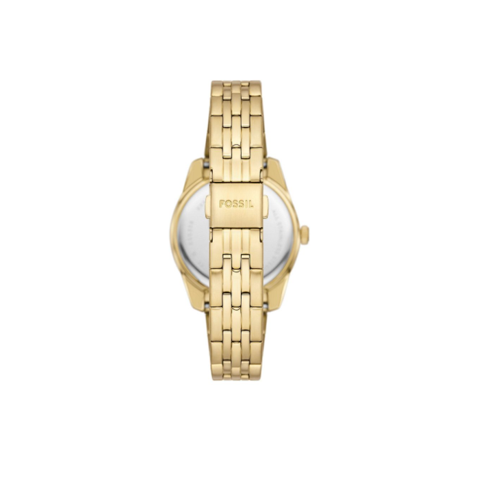 Dit Fossil horloge met referentie ES5338 is een horloge uit de Scarlette collectie. Het uurwerk is vervaardigd uit een 32mm geelgoudkleurige staal horlogekast en band. De wijzerplaat heeft een gouden kleur.