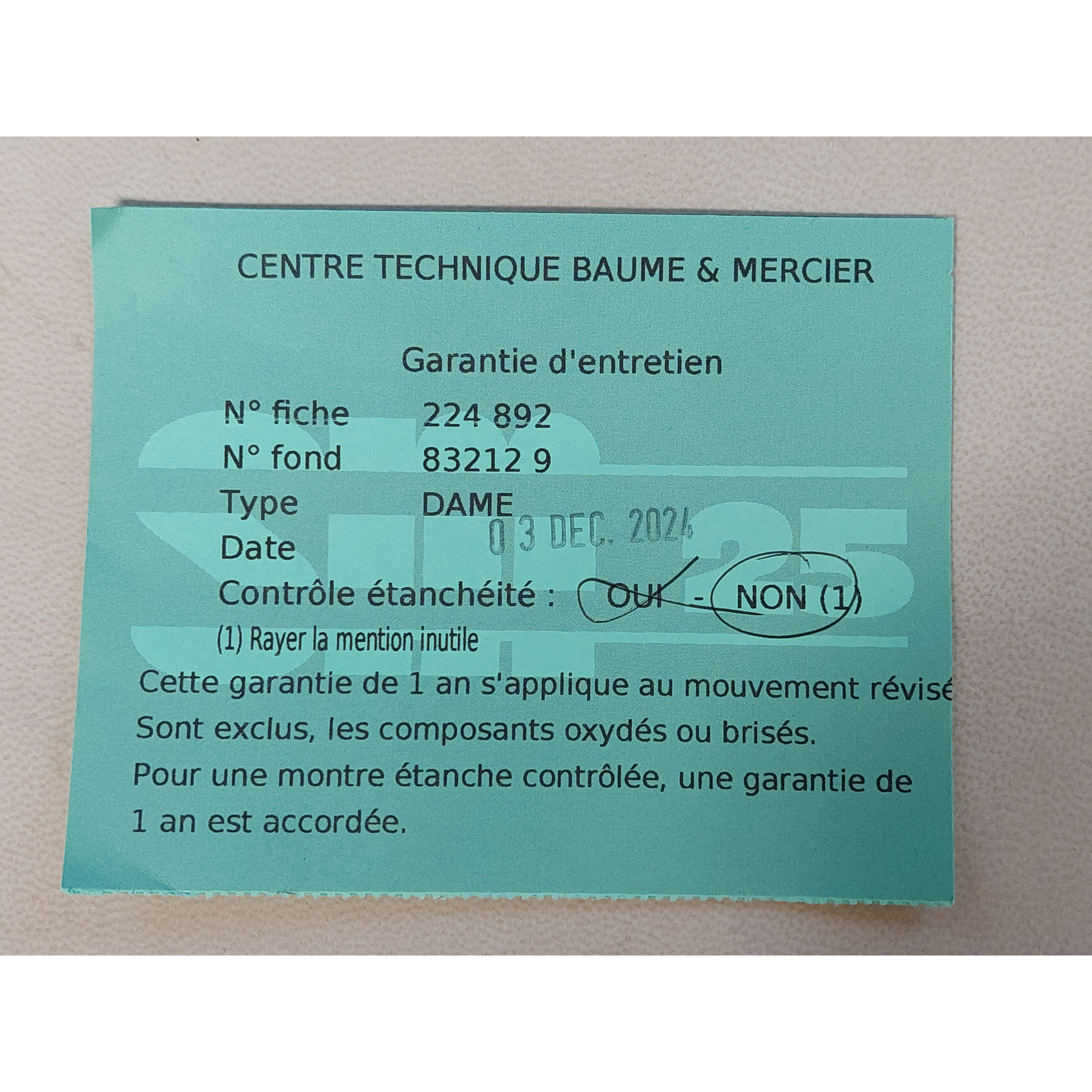 - Heeft een volledig onderhoud en nazicht verkregen bij Baume & Mercier