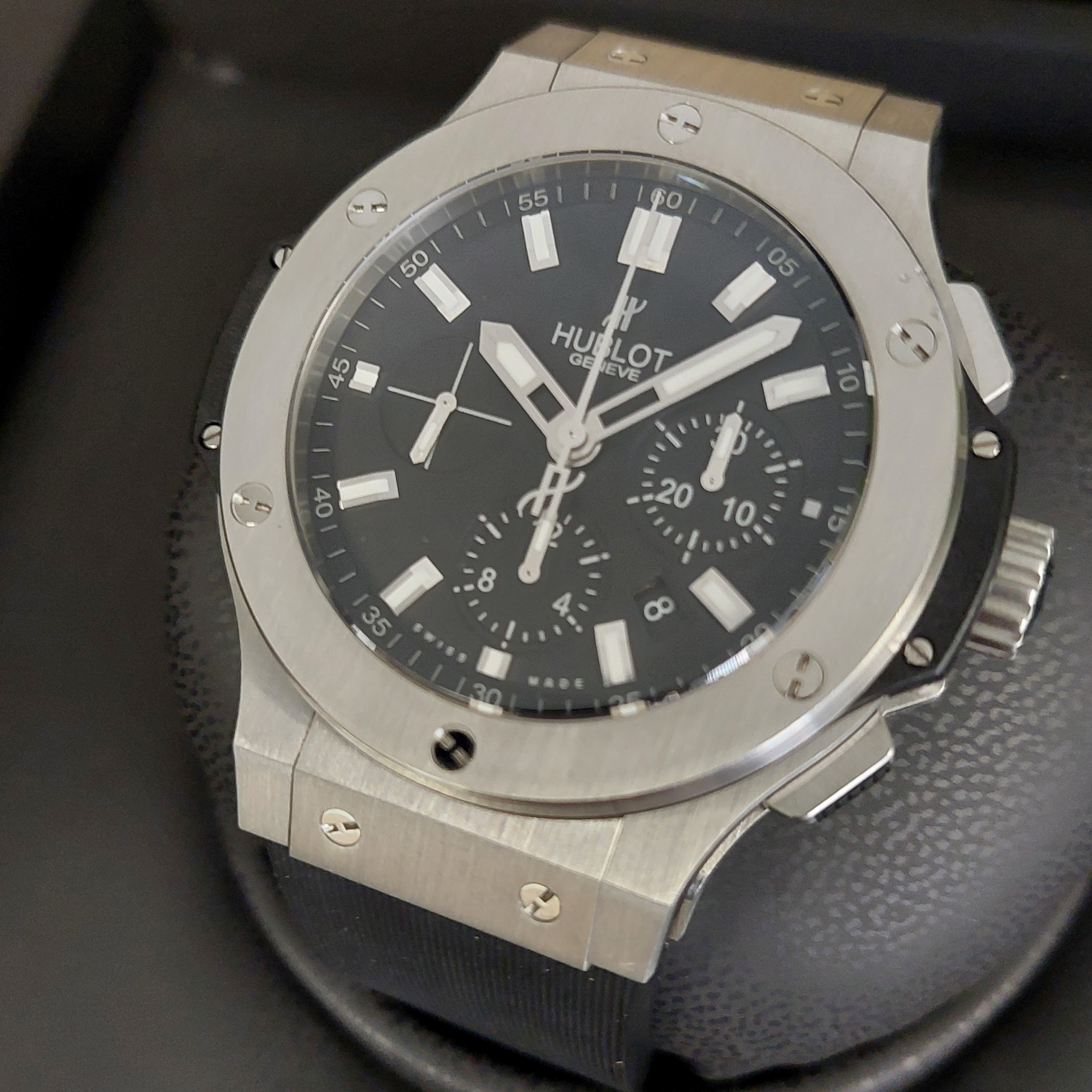 De Hublot Big Bang 411.C1.1170.RX is tweedehands te koop in onze zaak. Het Hublot horloge heeft een 44 mm staal kast en zwart rubberen armband.