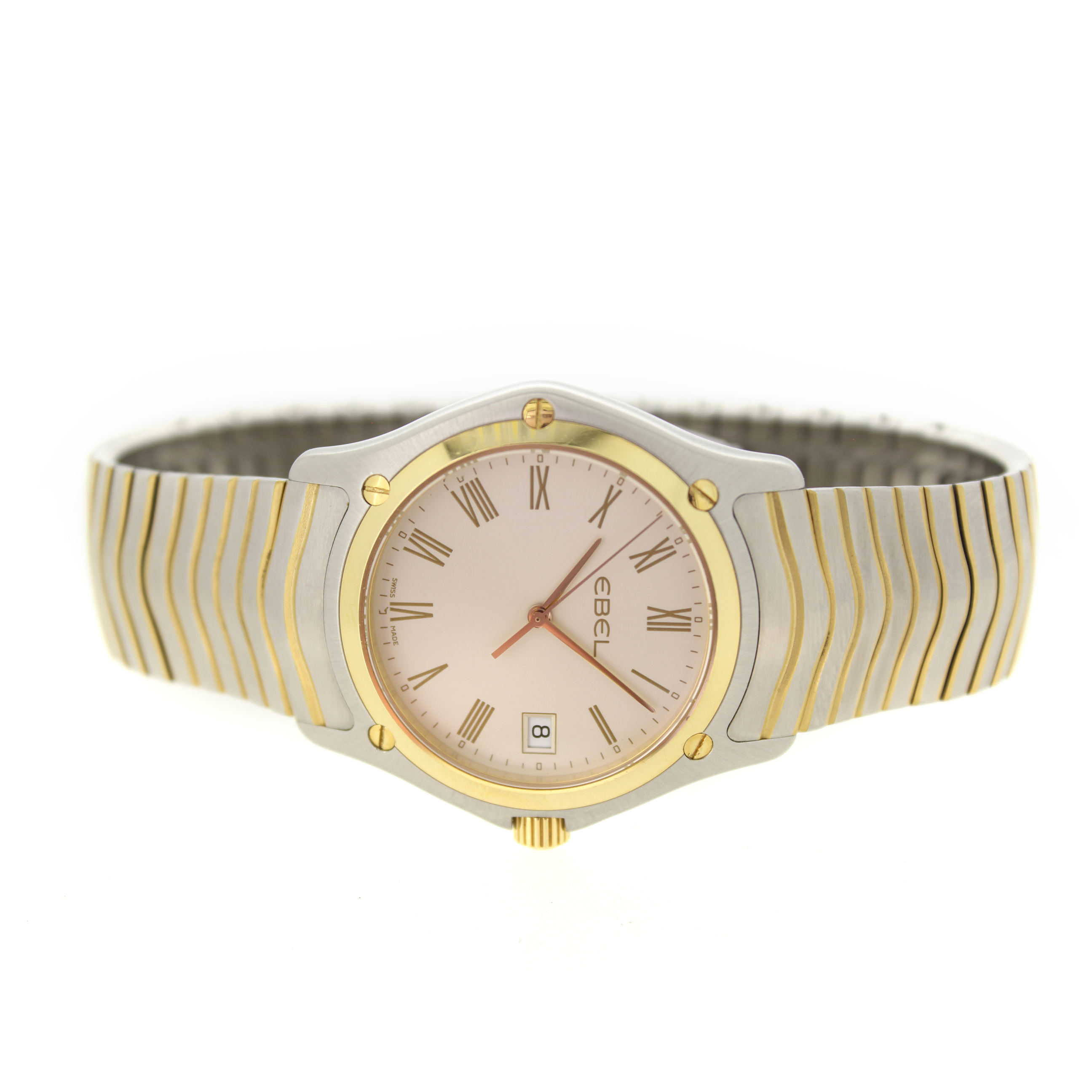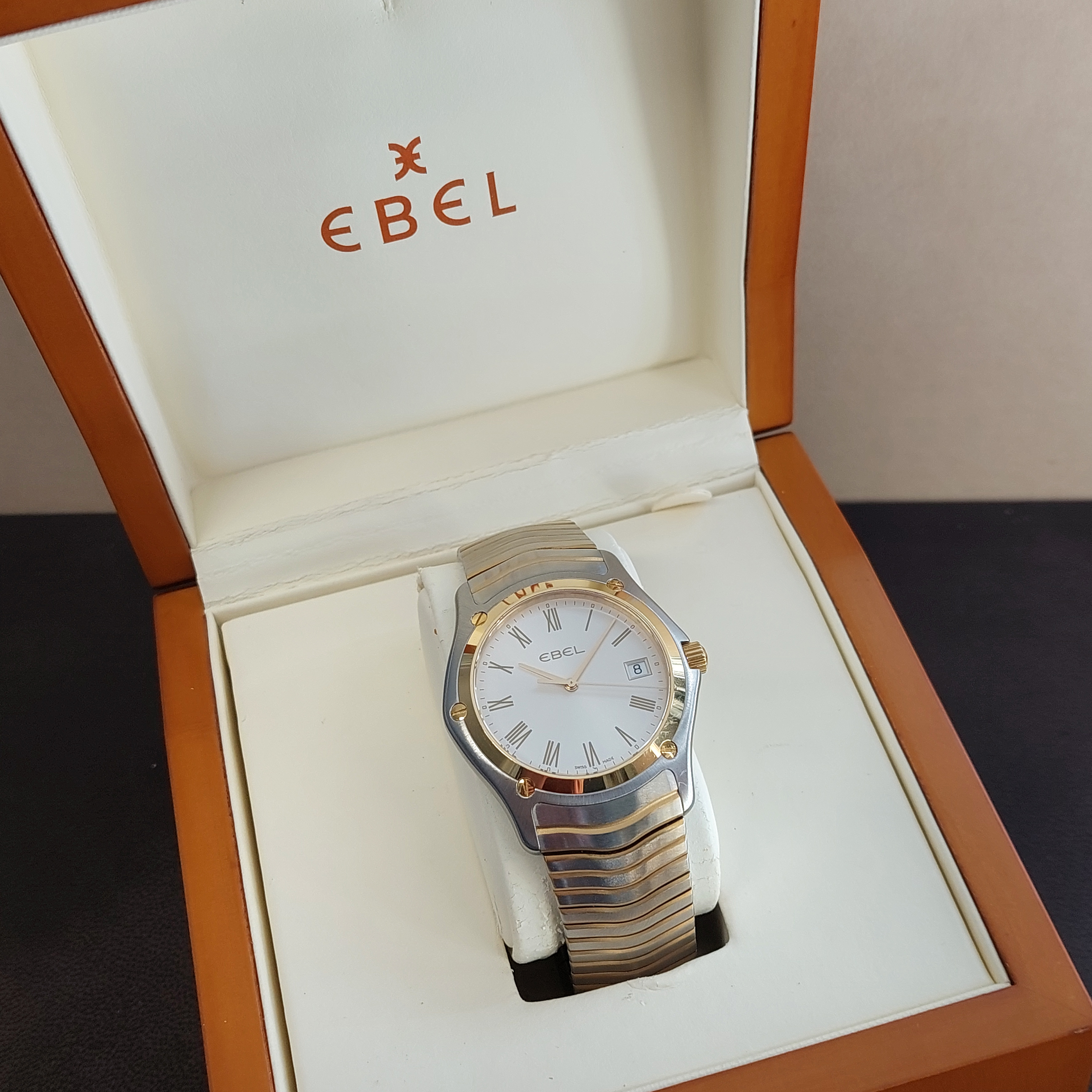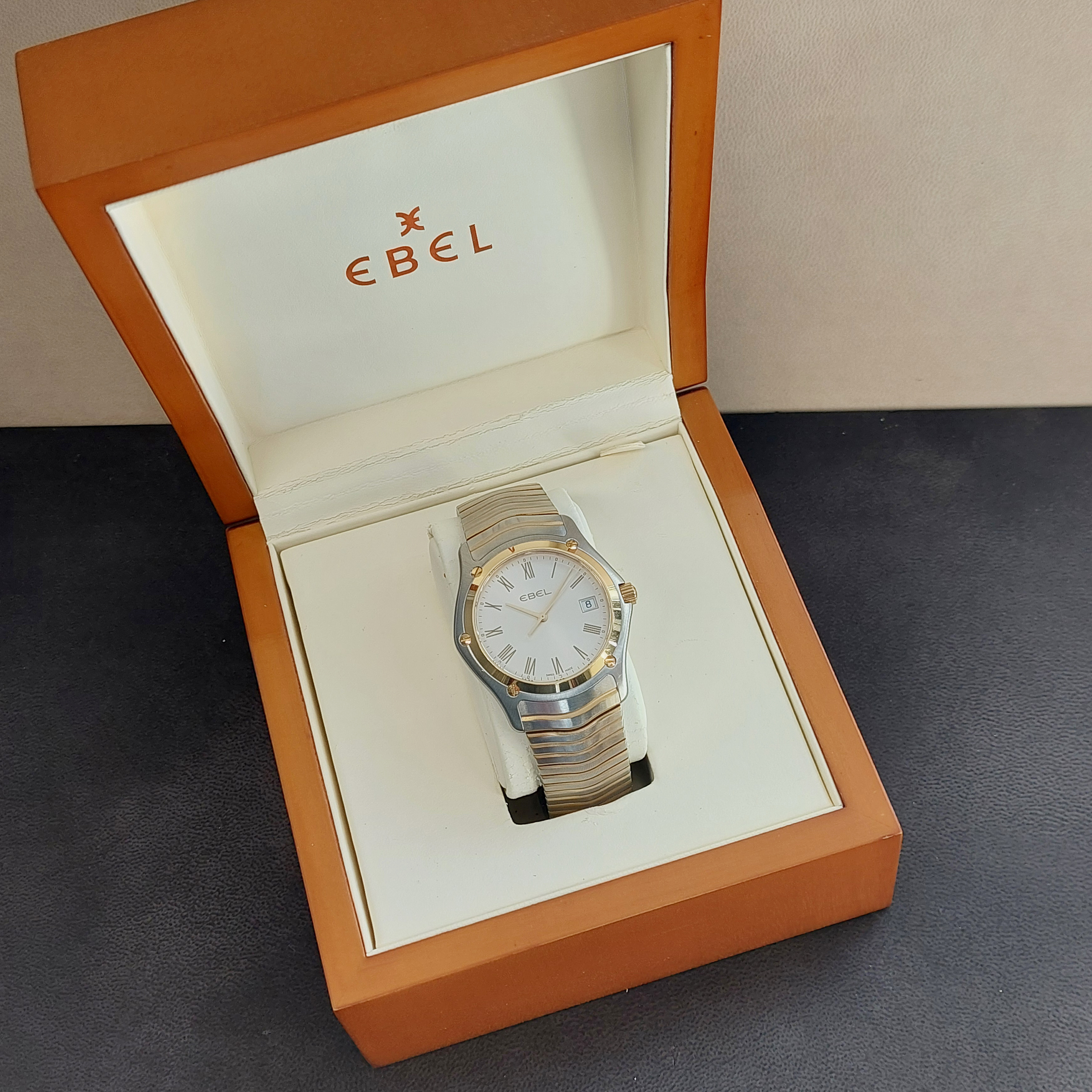 Dit stijlvolle tweedehands Ebel Wave Classic dameshorloge met referentie 1215652 is een elegant quartz uurwerk met een verfijnde beige wijzerplaat. Het horloge combineert roestvrij staal met 18 karaat geelgoud en is voorzien van originele doos en documenten.