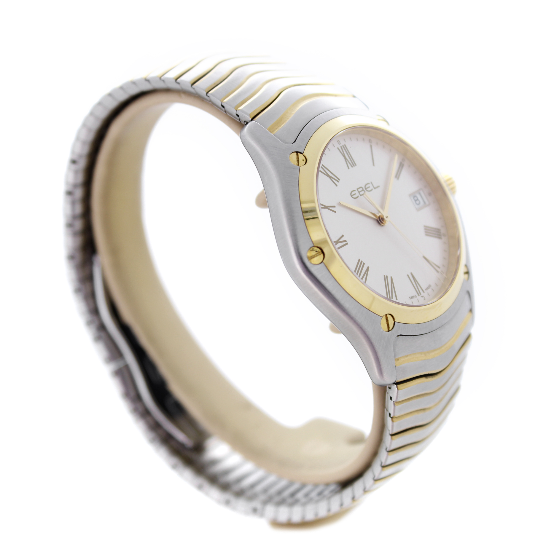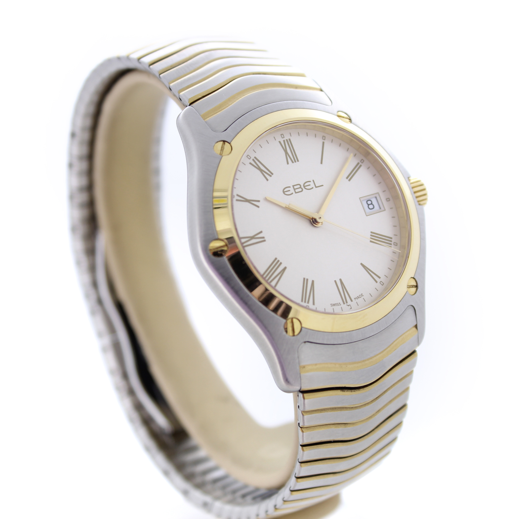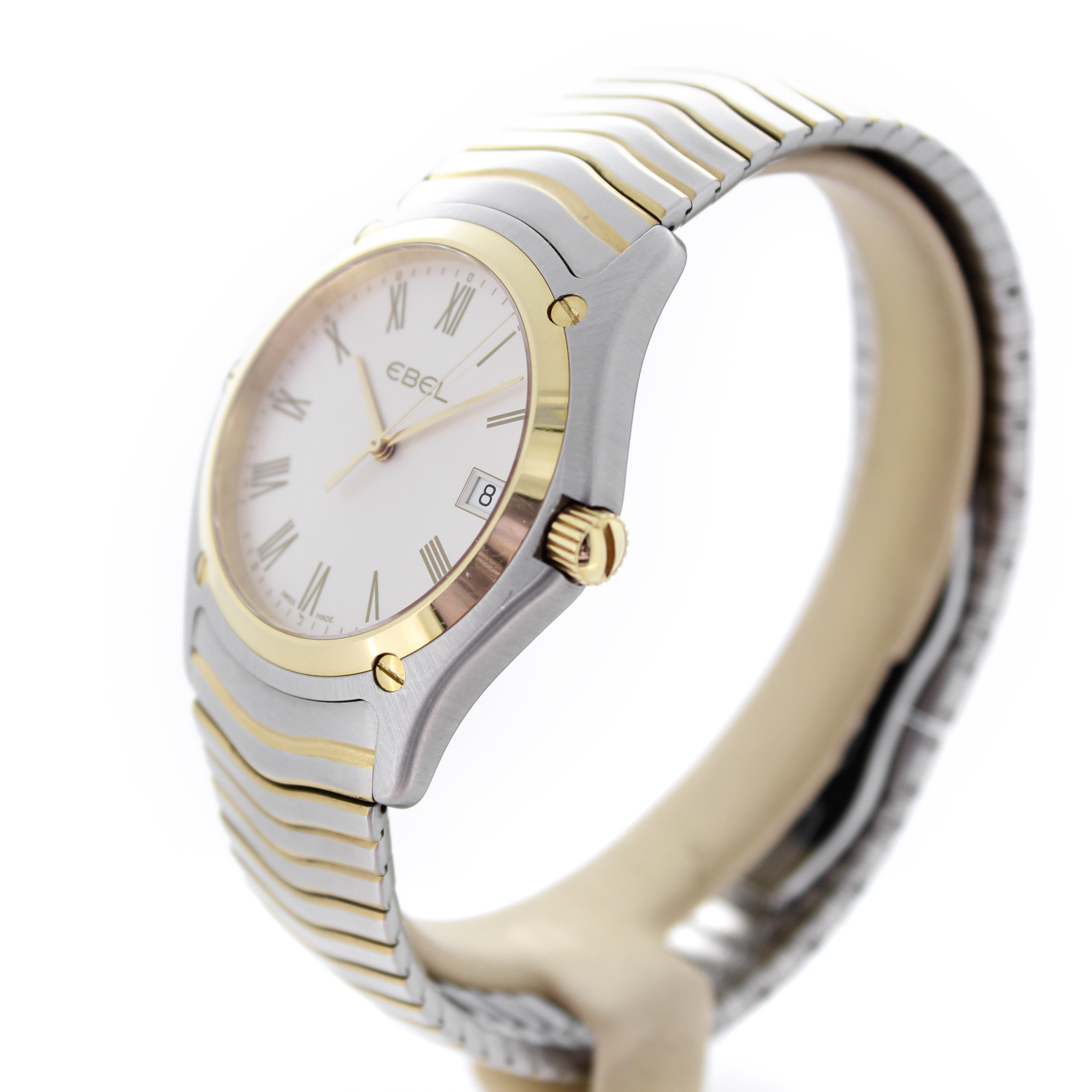 Dit stijlvolle tweedehands Ebel Wave Classic dameshorloge met referentie 1215652 is een elegant quartz uurwerk met een verfijnde beige wijzerplaat. Het horloge combineert roestvrij staal met 18 karaat geelgoud en is voorzien van originele doos en documenten.