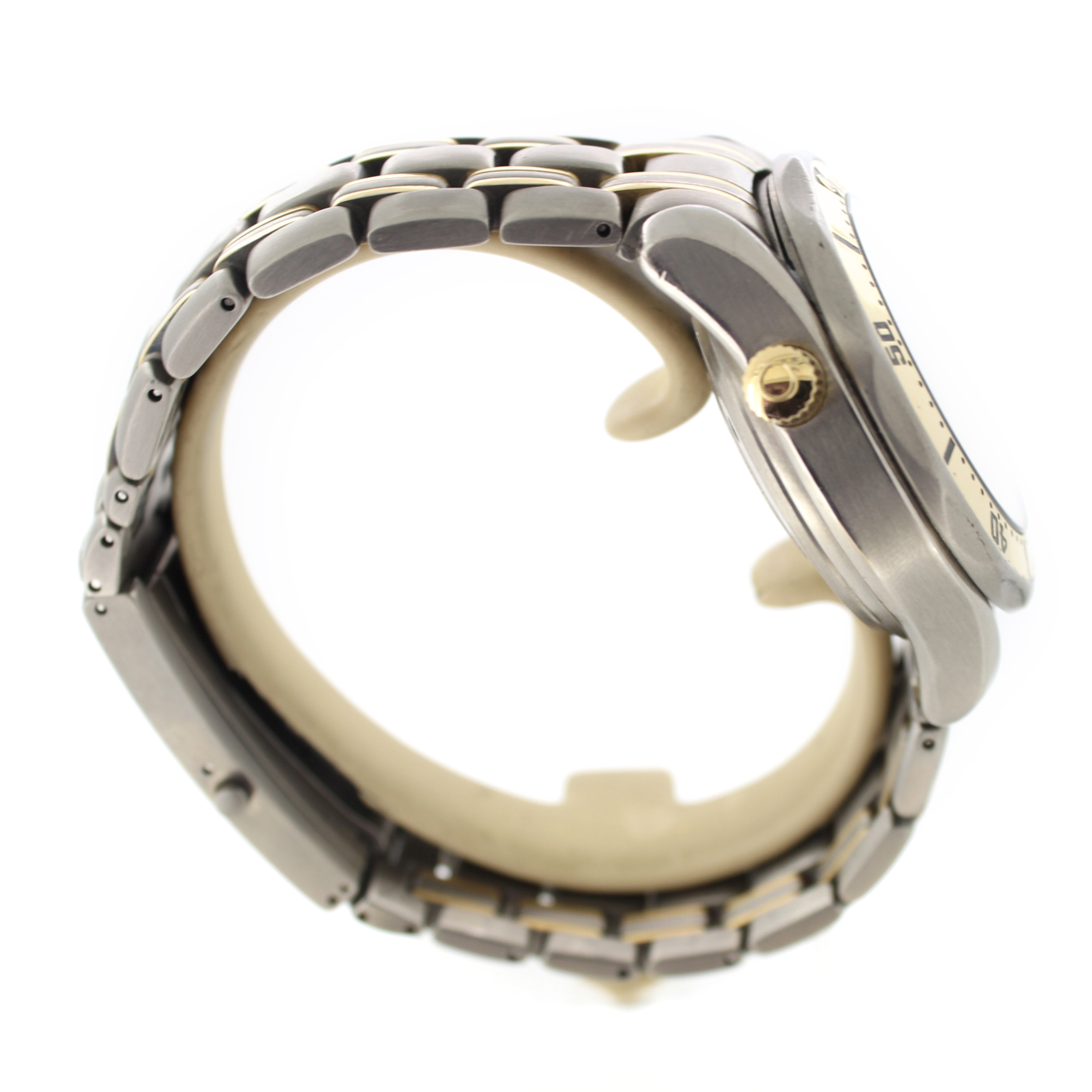 Dit pre-owned Omega Seamaster Diver 300M 2297.80.00 is een automatisch horloge en tweedehands te koop. Het horloge heeft een 41.5mm titanium kast en titanium met gouden armband.