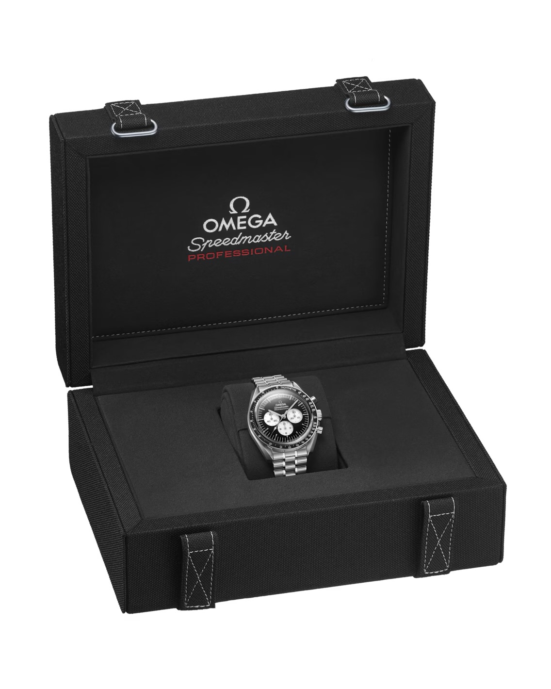 Dit 42 mm model is direct geïnspireerd op de vierde generatie Speedmaster die door astronauten op de maan werd gedragen. Het meest opvallende kenmerk is de "Reverse Panda" wijzerplaat: een zwart gelakte basis met een trapsgewijs ("step dial") patroon, gecomplementeerd door contrasterende wit gelakte subwijzerplaten in elegante gerhodineerde frames.