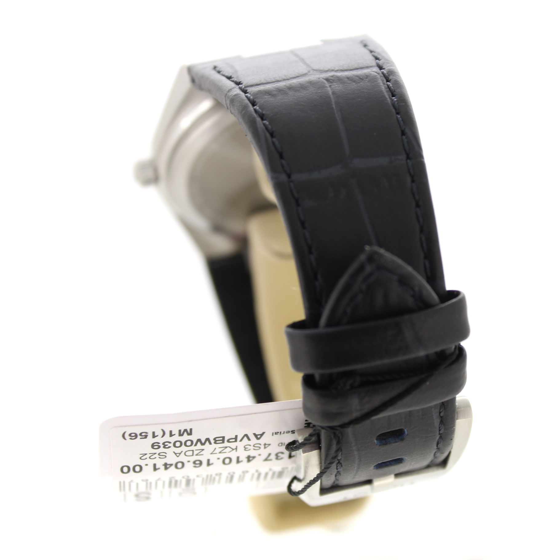 De kast is vervaardigd uit hoogwaardig zilverkleurig staal en wordt gecombineerd met een elegante blauwe lederen armband. Dit zorgt voor een licht en comfortabel draaggevoel, ideaal voor zowel dagelijks gebruik als meer formele gelegenheden. De blauwe wijzerplaat geeft het horloge een moderne en verfijnde uitstraling.
