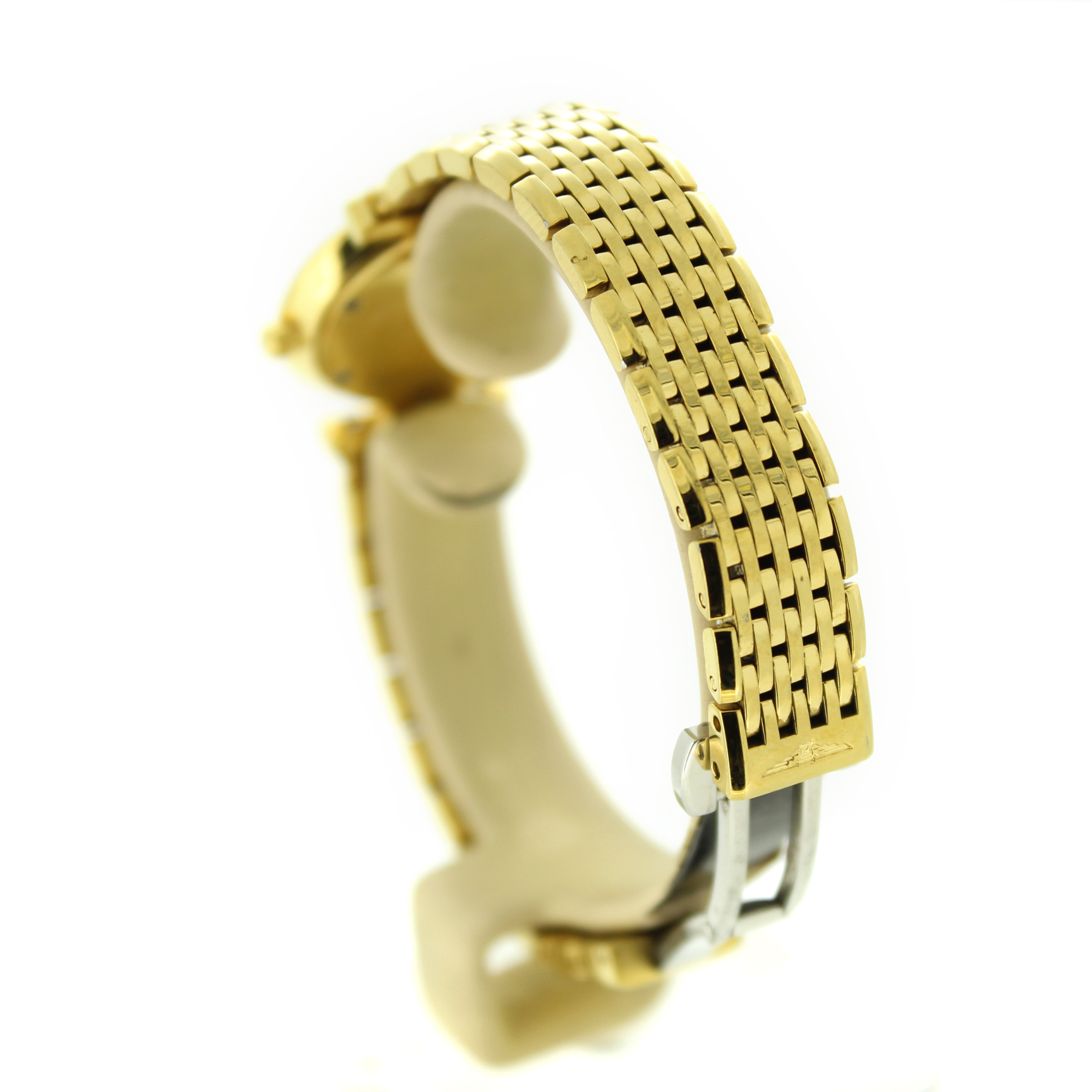 Dit elegante Longines La Grande Classique dameshorloge straalt verfijning en tijdloze klasse uit. Met een compacte 24 mm kast en armband in geelgoudkleurig roestvrij staal is dit een subtiel maar luxueus accessoire. De witte wijzerplaat wordt beschermd door een krasbestendig saffierglas.