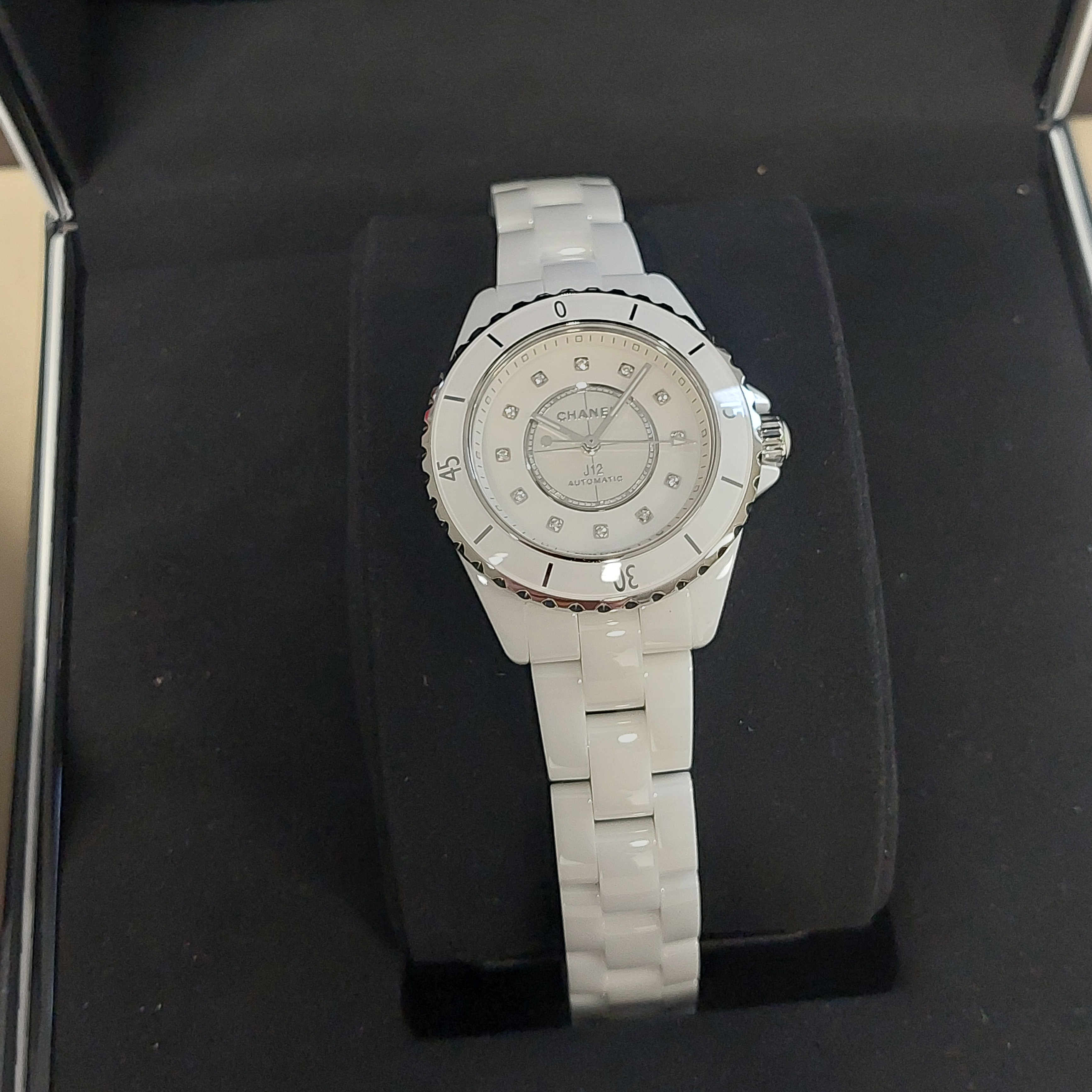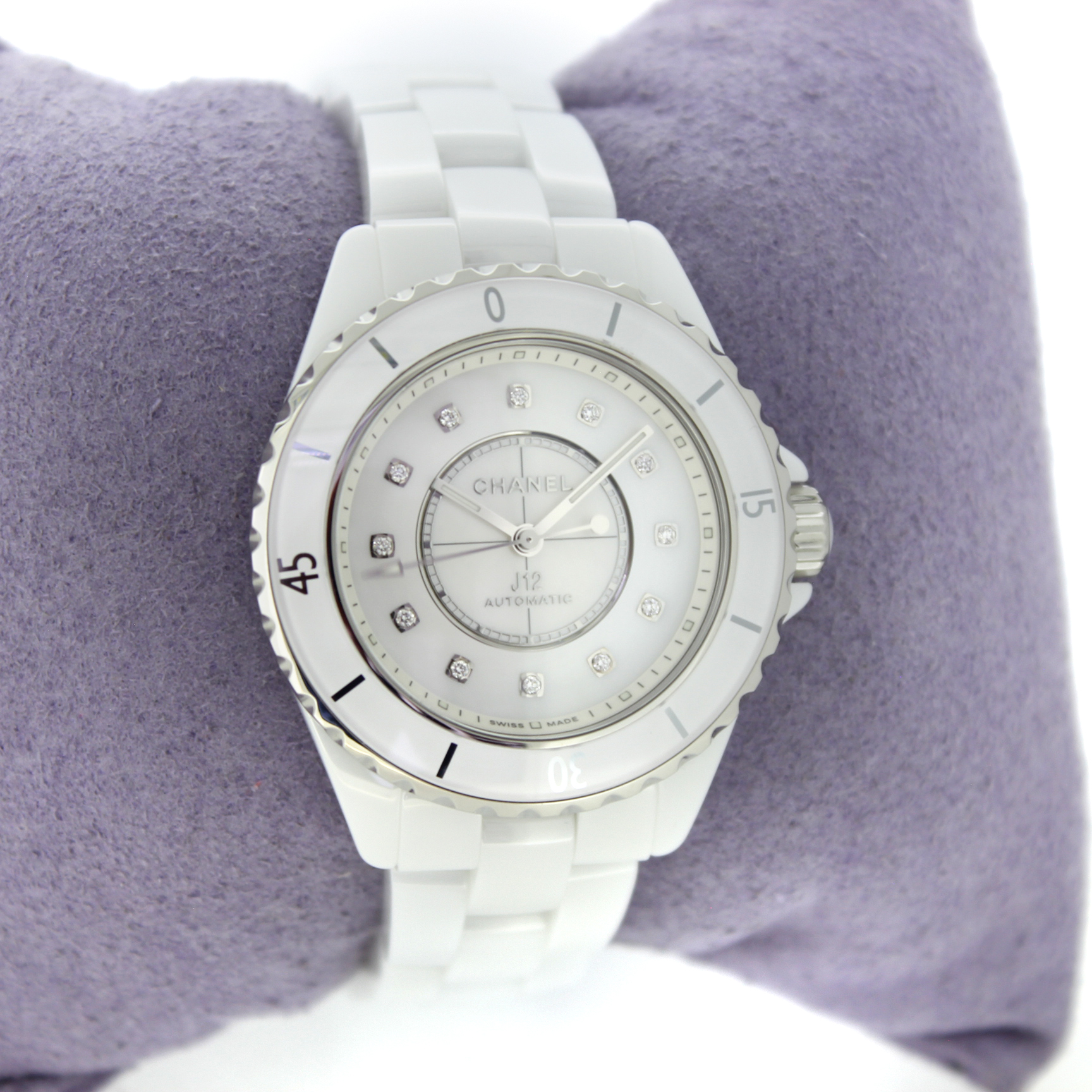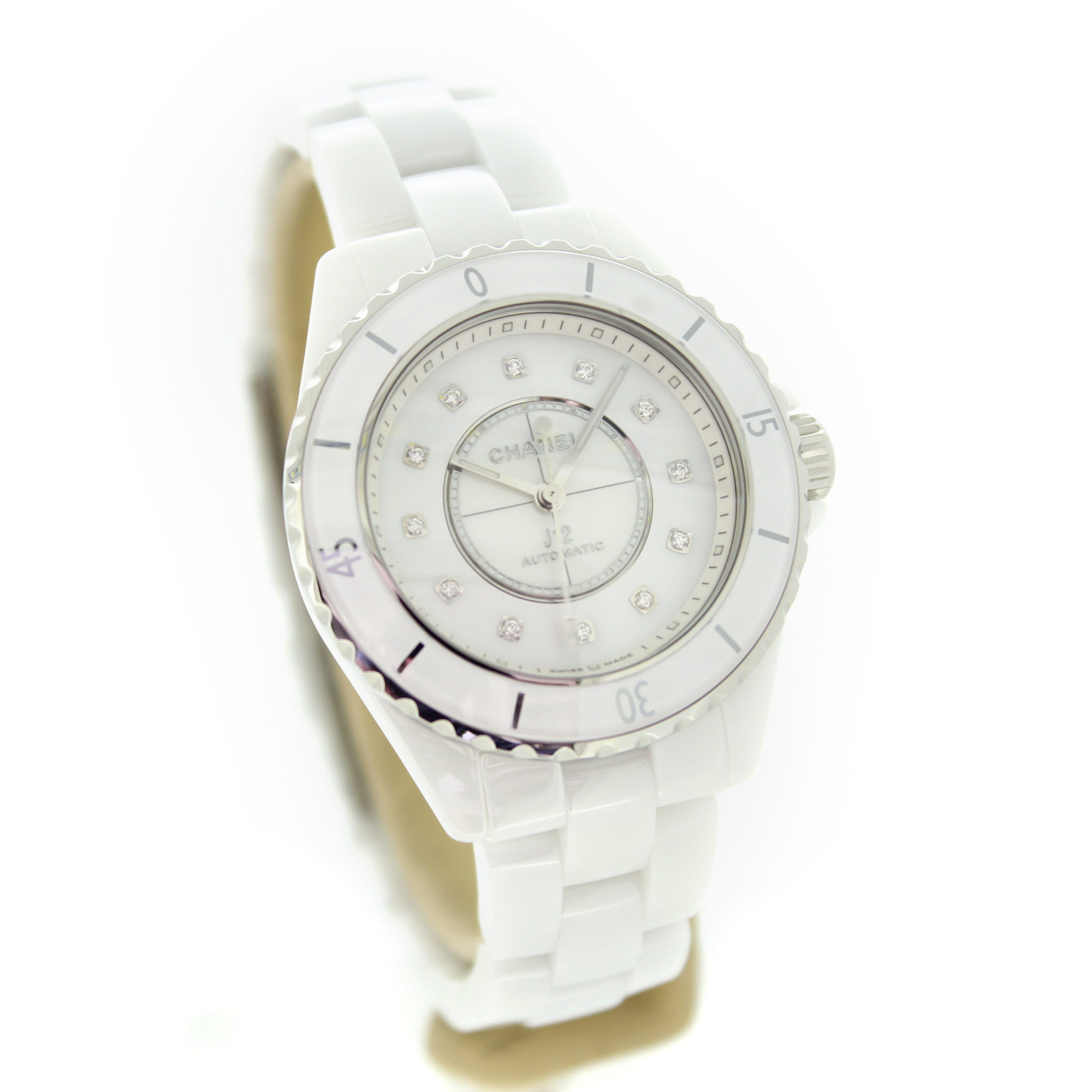 Tweedehands Chanel J12 H9741 Automaat – 35 mm – Wit keramiek met diamanten - Nieuwstaat