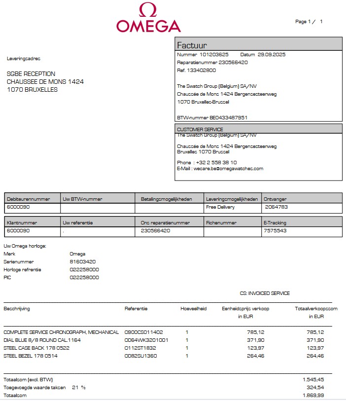 - Inclusief : Originele Omega garantiekaarten