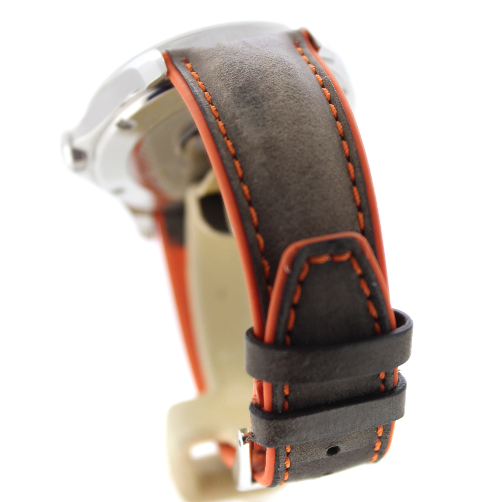 - Materiaal kast & band: Zilverkleurig roestvrij staal + Bruin leder