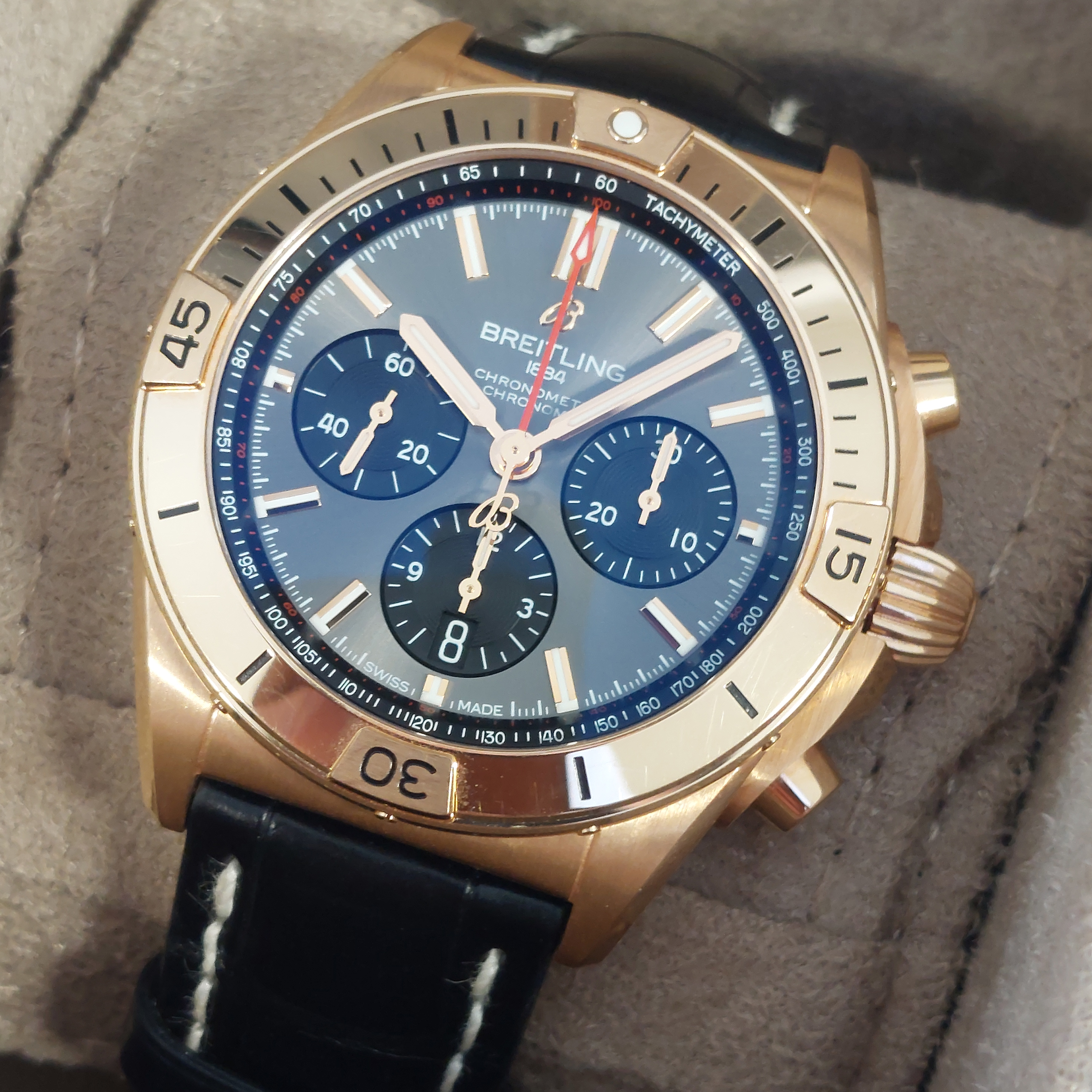 - De Breitling box en documenten zijn aanwezig.