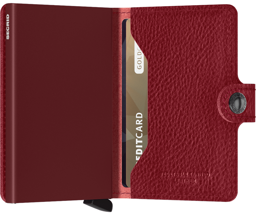 Deze Secrid Wallet uit de MiniWallet collectie heeft een bordeaux lederen buitenkant met reliëf. MiniWallets sluiten met een drukknop. In de Cardprotector is plaats voor 6 vlakke of 4 verdikte kaarten. Daarnaast heeft u in de MiniWallet nog extra plaats voor verschillende bankbiljetten en visitekaartjes. Afmeting: 68 x 102 x 21mm