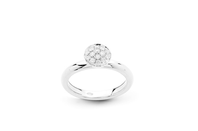 Deze Hulchi Belluni ring uit de Funghetti familie is een 18 karaat witgouden juweel met de referentie 09178S-WW. Deze ring is gezet met 14 briljanten met een totaal gewicht van 0.17ct.
