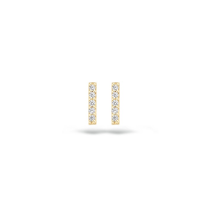Subtiel en toch schitterend aanwezig zijn deze Blush oorbellen 7196YZI met 5 zirkonia’s die horizontaal zijn geplaatst in 14 karaat geelgoud. De steker is asymmetrisch geplaatst waardoor de onderzijde van de oorbel iets langer is dan de bovenzijde en de oorbel mooi draagt. De afmeting van de oorbellen is 6,5 x 1,3 mm.