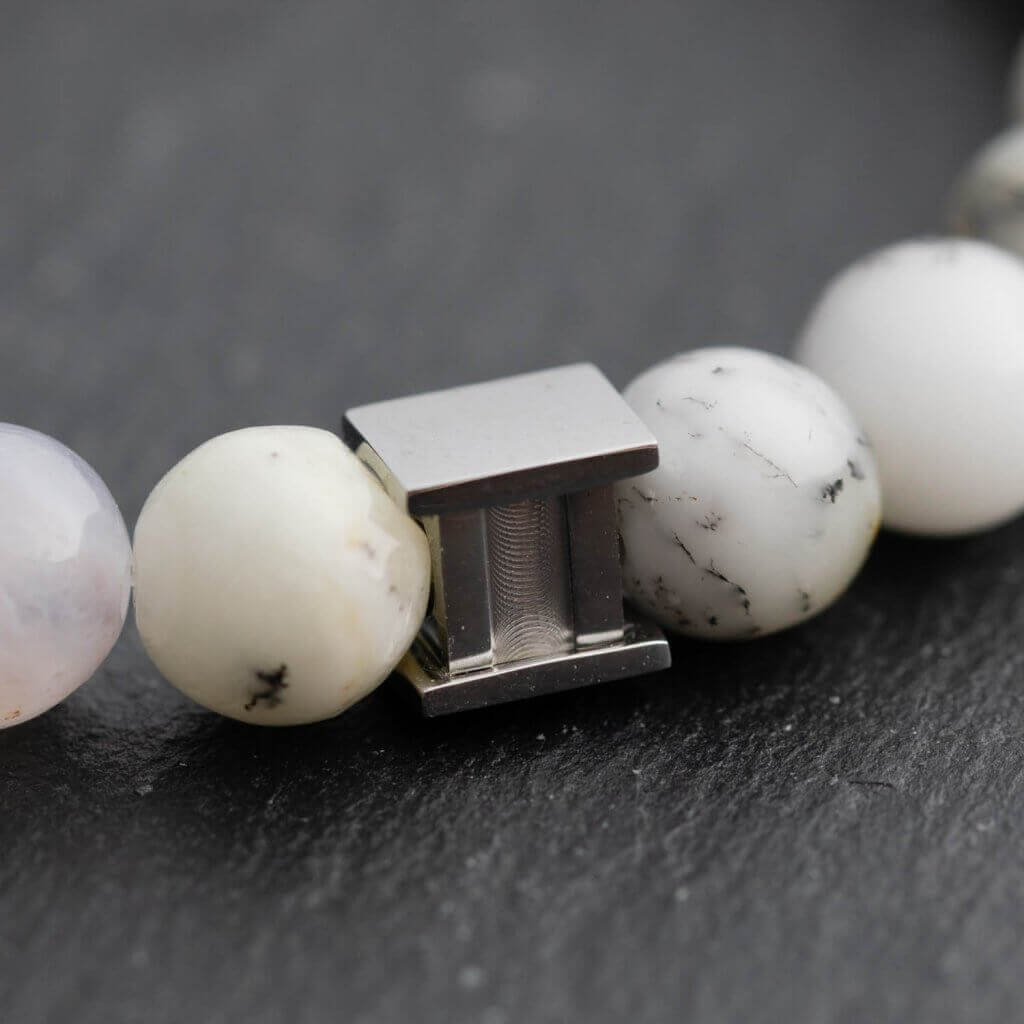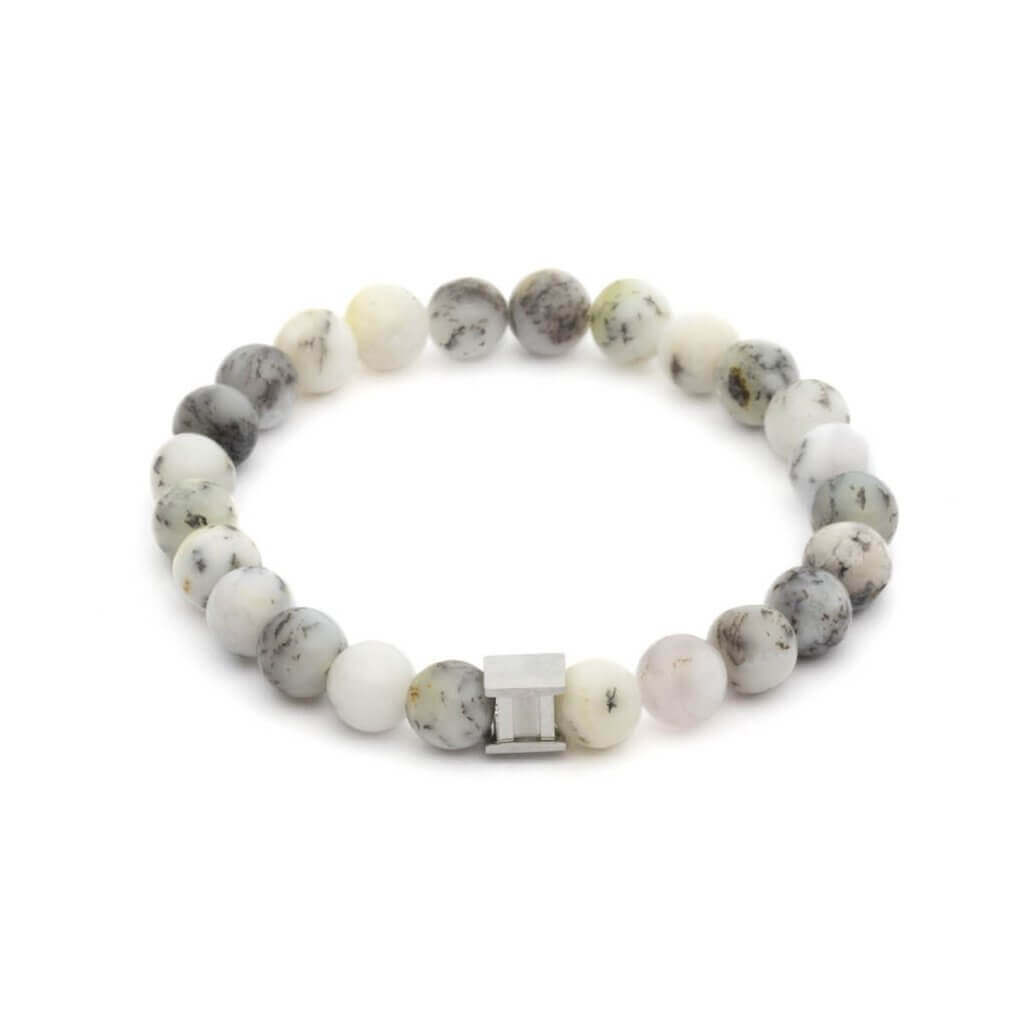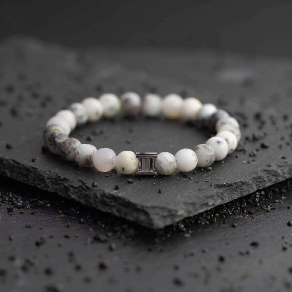 De Gemini Gem Snow herenarmband maakt alleen al door zijn glans een statement. De natuursteen Moss Opal - uit Mexico - is een emotionele steen en is daarom zeer kenmerkend door zijn heldere glans. Het woord "opaal" zou afkomstig zijn van het Sanskriet woord "upala", wat "edelsteen" betekent .