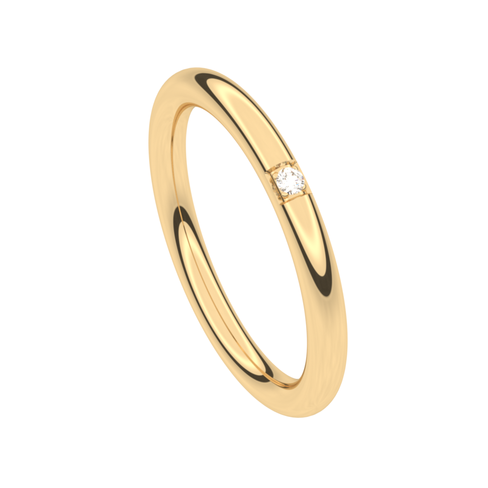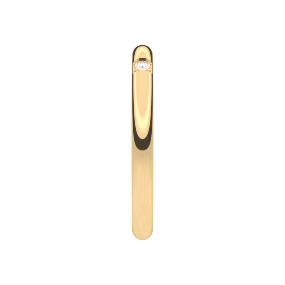 Deze trouwring 4T250CG-25 uit de Traditions collectie is een geelgouden blinkende trouwring in 18 karaat goud (maar ook verkrijgbaar in 14 en 9 karaat goud) en heeft een ronde boord van 2.5mm diameter en is gezet met een 0.02ct briljant (zetting C, 4 grainen).