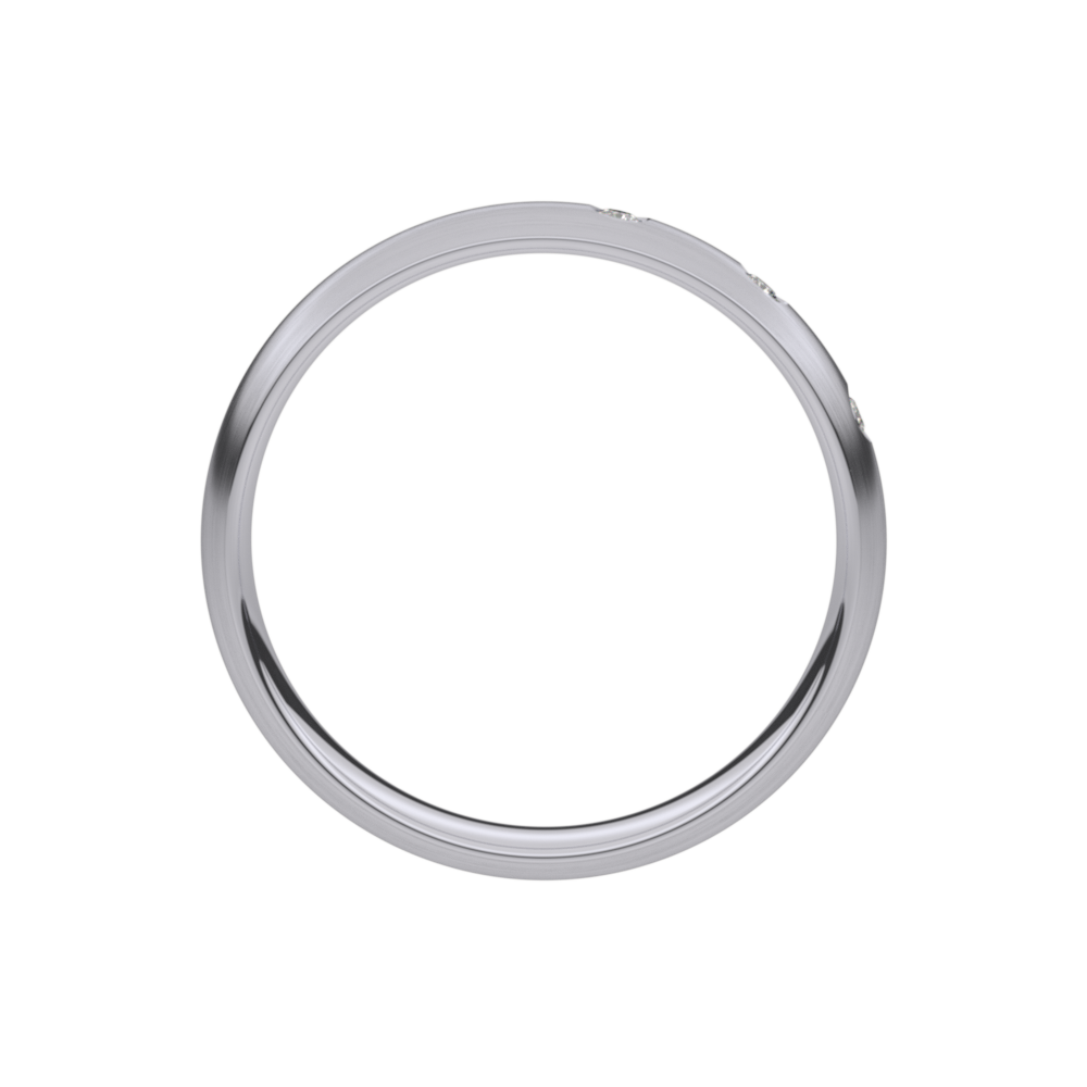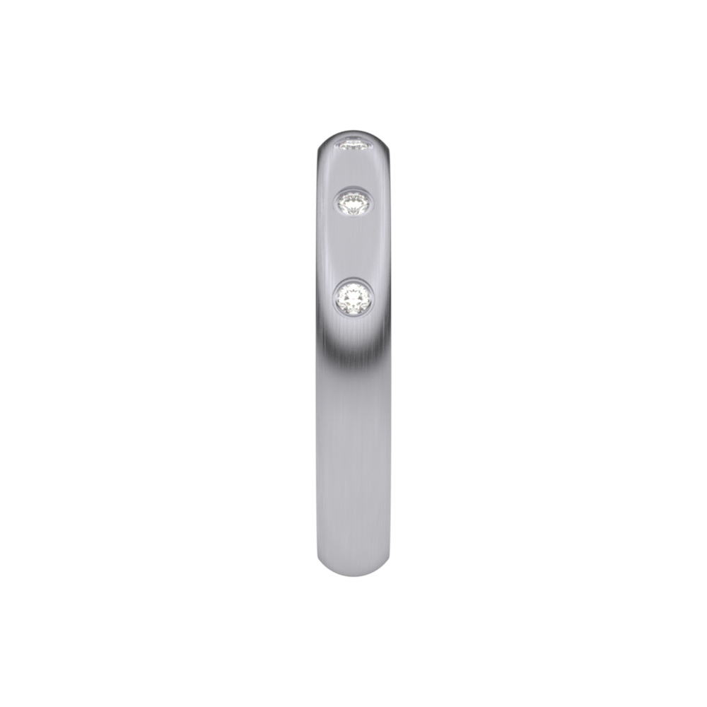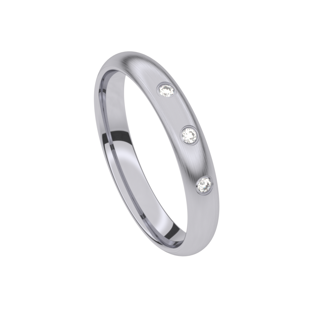 Deze trouwring 5T163ED/35 uit de Traditions collectie is een matte Palladium trouwring gezet met  drie briljanten van 0.015 ct per briljant (zetting E - overklopt). De trouwring heeft een breedte van 3.5mm en een dikte van 1.6mm en is dus licht gebogen.