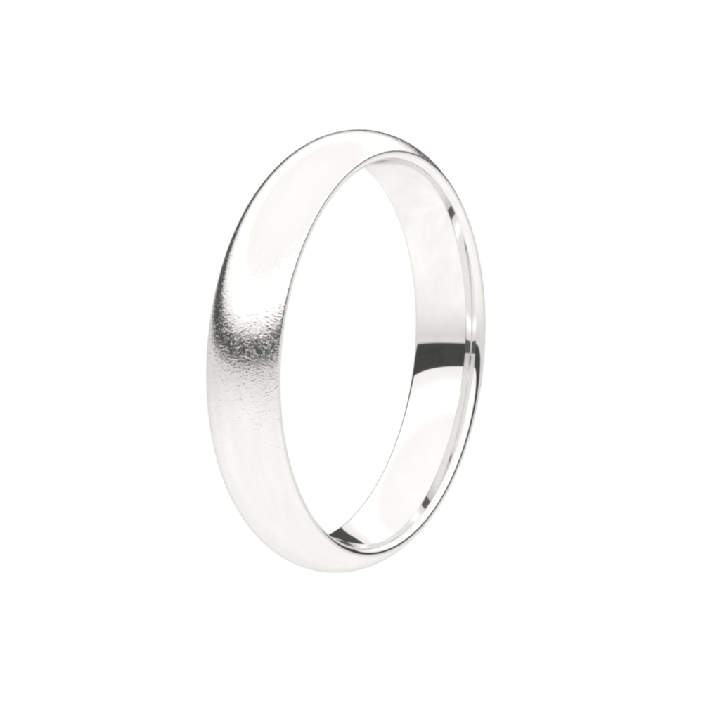 Deze trouwring 5T169-P/40 uit de Traditions collectie is een Platina  gehamerde matte trouwring en heeft een ronde boord van 4 mm breedte en een dikte van 1.6mm, de trouwring is zacht bol.