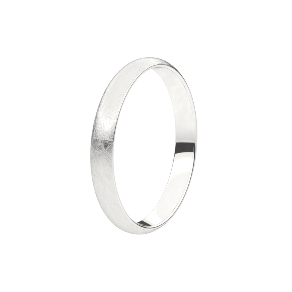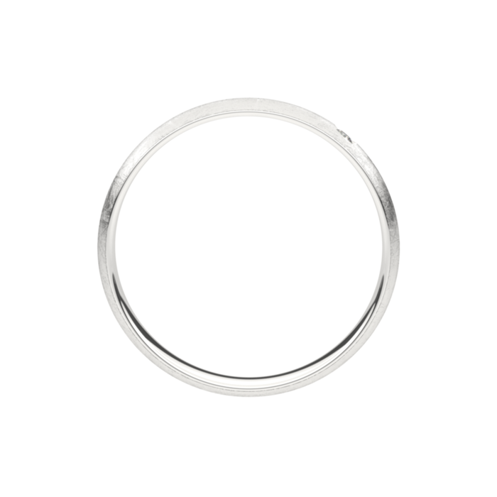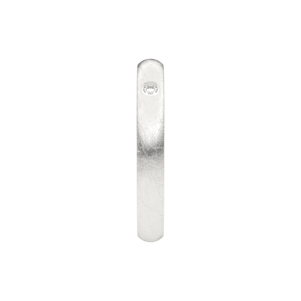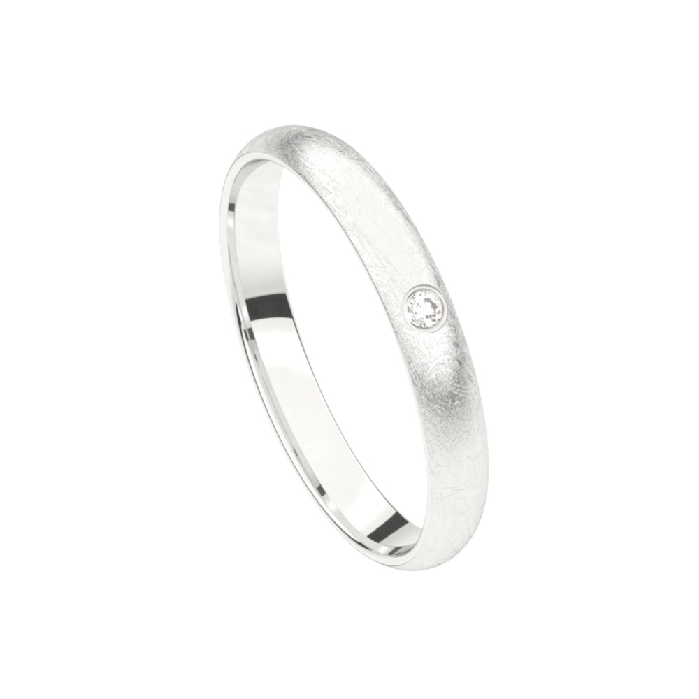 Deze trouwring 5T126AW/30 uit de Traditions collectie is een witgouden ijsmat trouwring in 18 karaat goud (maar ook verkrijgbaar in 14 en 9 karaat goud), gezet met een briljant 0.02ct (zetting A, overklopt) en heeft een zacht bolle boord van 3mm breedte en een dikte van 1.2mm.