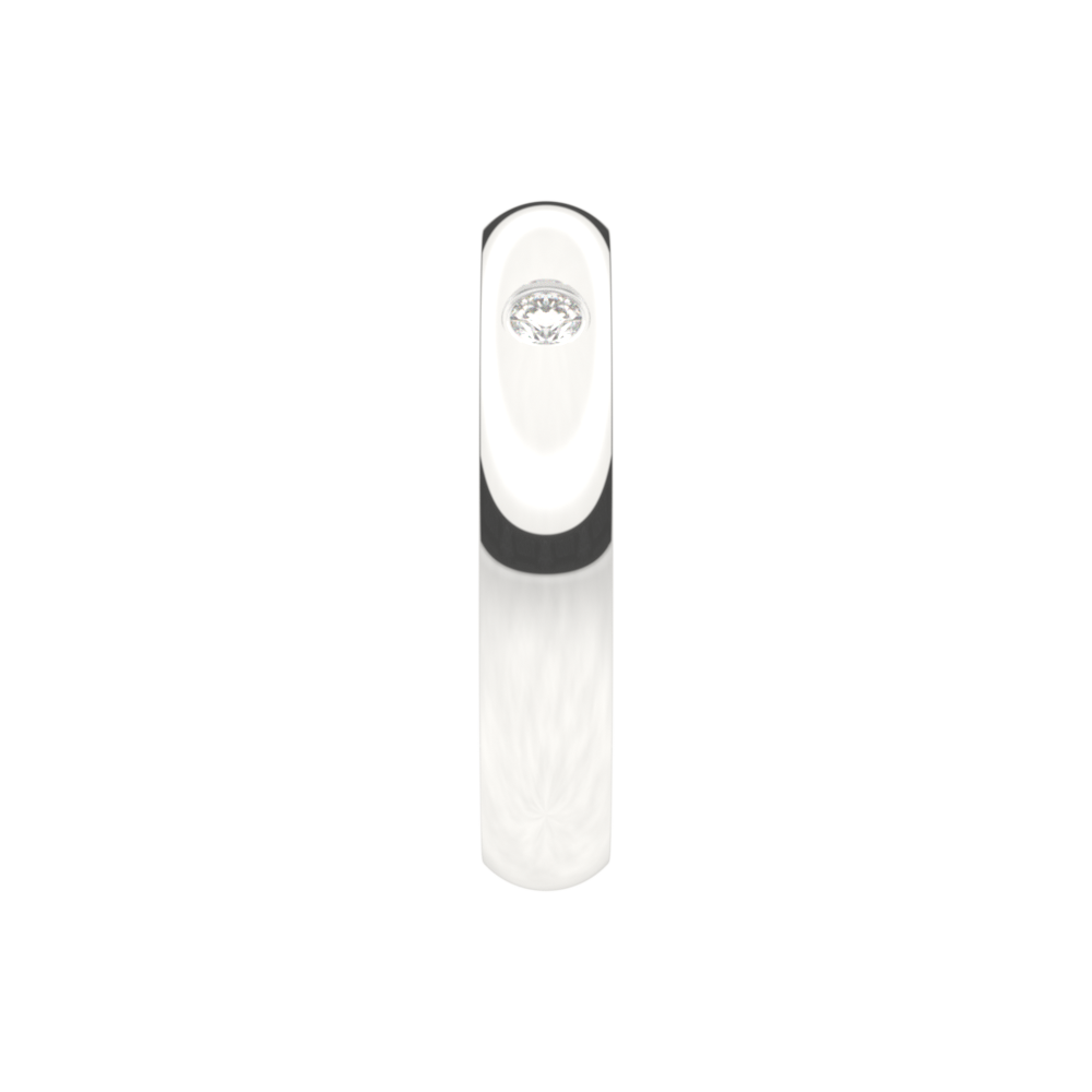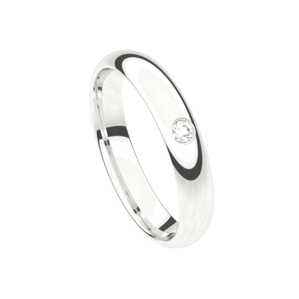 Deze trouwring 5T160BW/40 uit de Traditions collectie is een witgouden blinkende trouwring in 18 karaat goud (maar ook verkrijgbaar in 9 en 14 karaat goud), De trouwring heeft een zacht bolle boord van 4mm breedte en een dikte van 1.6mm. De trouwring is gezet met een briljant van 0.05ct (zetting B - overklopt).