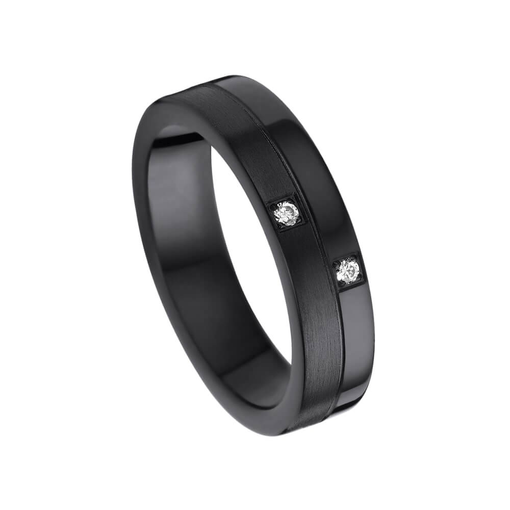 Juweel Trouwring Amici Black Stainless steel Hoogglans Langsmat Briljant 5547-X/50