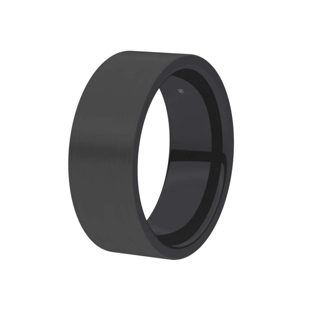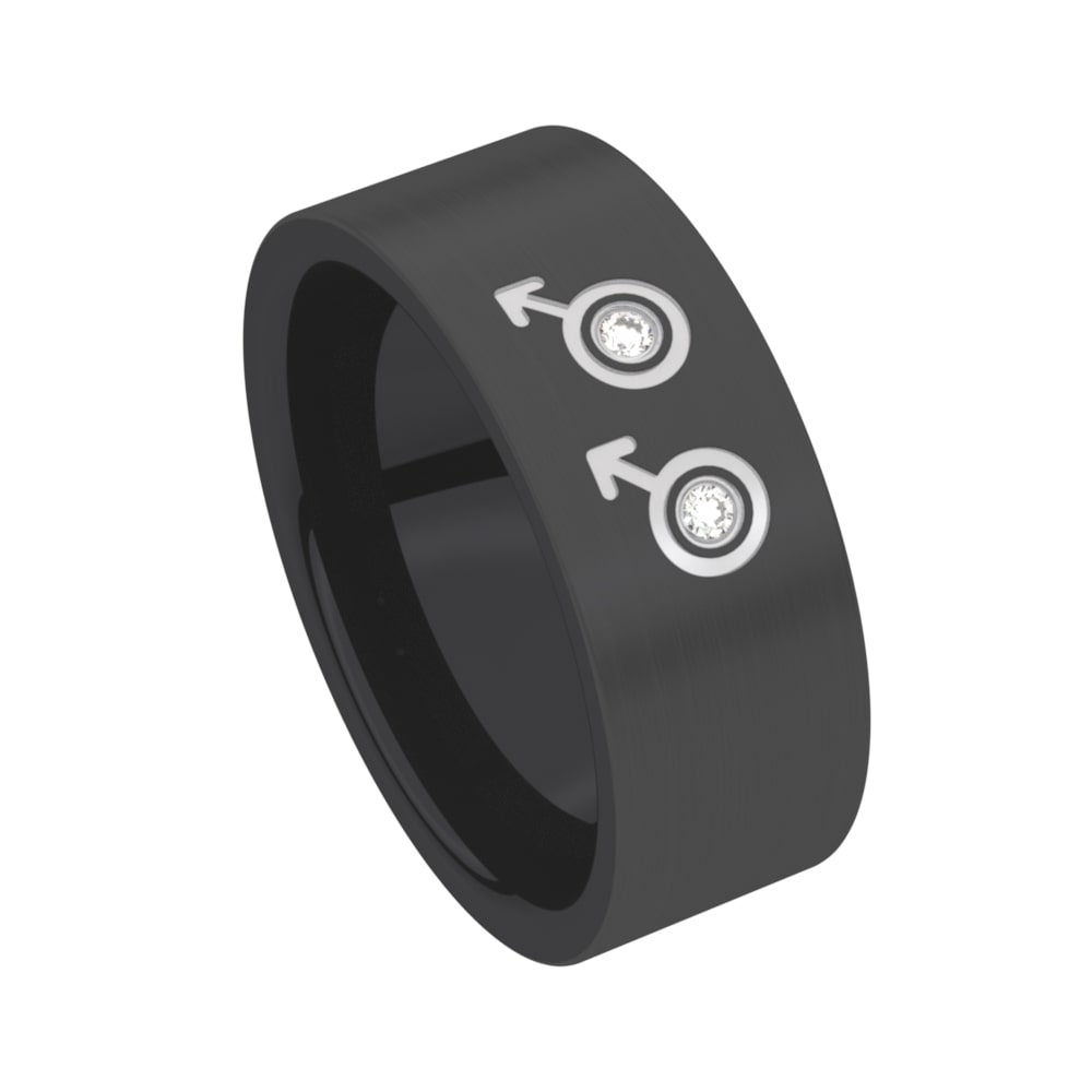 Deze trouwring of vriendschapsring 5632XM1/80 uit de Amici collectie is een black steel langsmat afgewerkte ring en is gezet met 2 briljanten (VS/Si -- G/H) in potzetting , met elk een gewicht van 0,015ct. Deze ring heeft een boord van 8mm diameter.