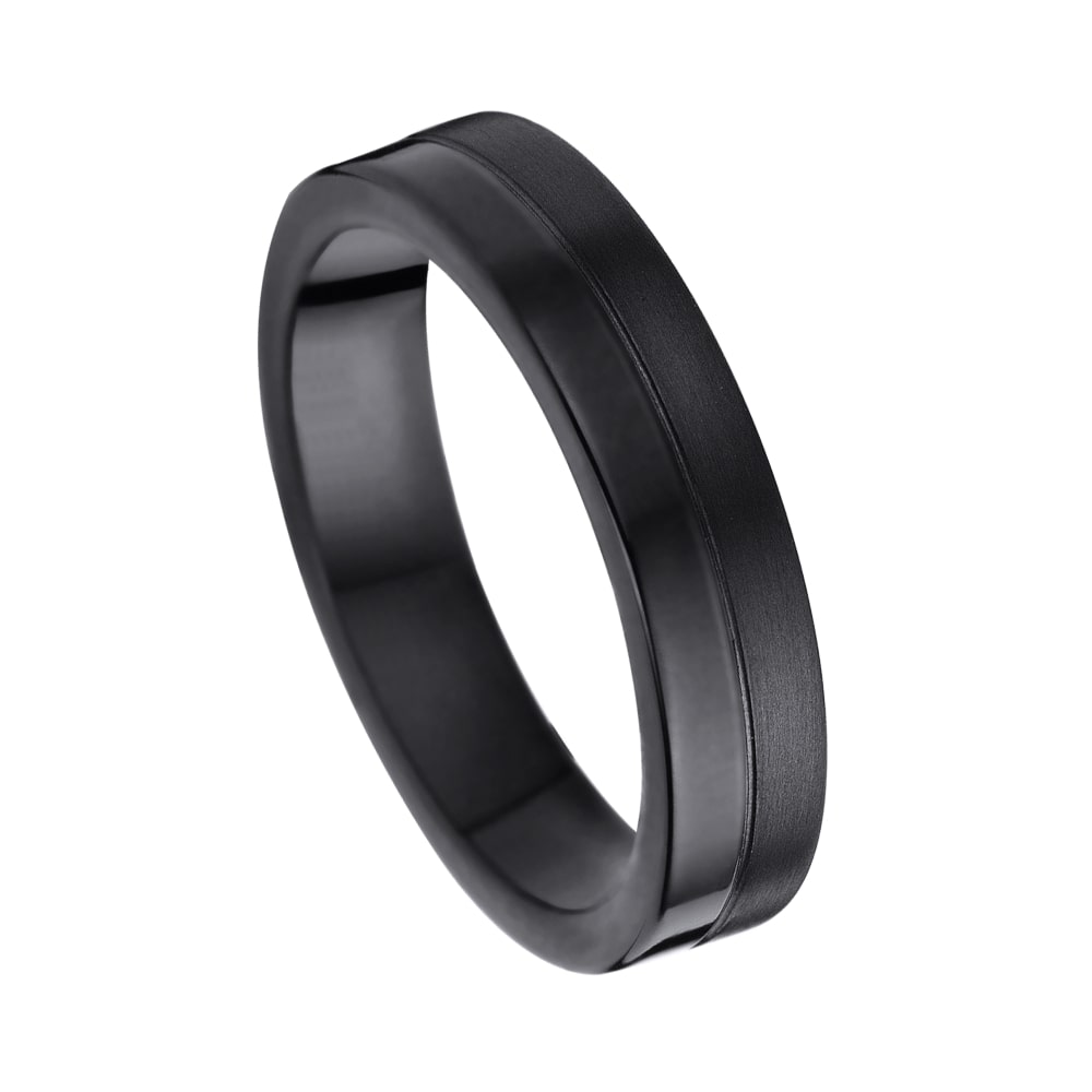 Deze trouwring of vriendschapsring 5567-X/50 uit de Amici collectie is een black steel met hoogglans en langsmat gematteerde ring. Deze ring heeft een boord van 5mm diameter.
