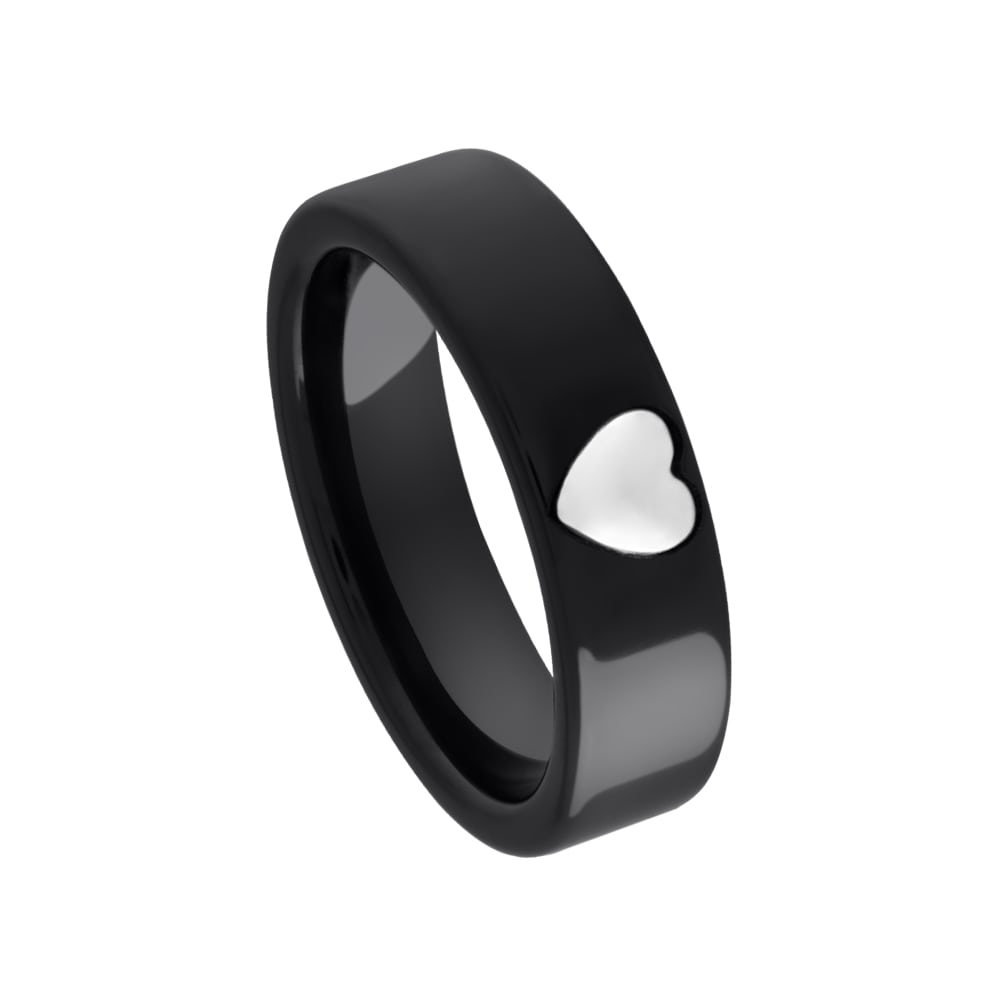 Deze trouwring of vriendschapsring 5618-XZ/55 uit de Amici collectie is een black steel hoogglans afgewerkte trouwring met een zilveren hartje. Deze ring heeft een boord van 5.5 mm diameter.