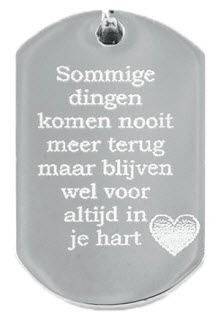 Deze hanger in staal is geschikt voor een fotogravure of een vingerprint. Maar uitsluitend een mooie tekst graveren op het hangertje kan uiteraard ook.