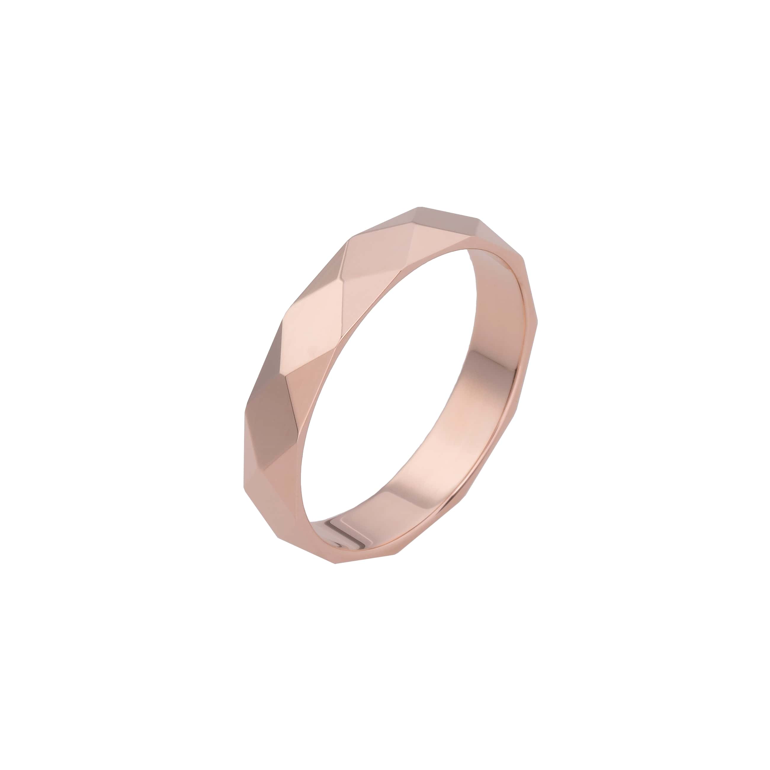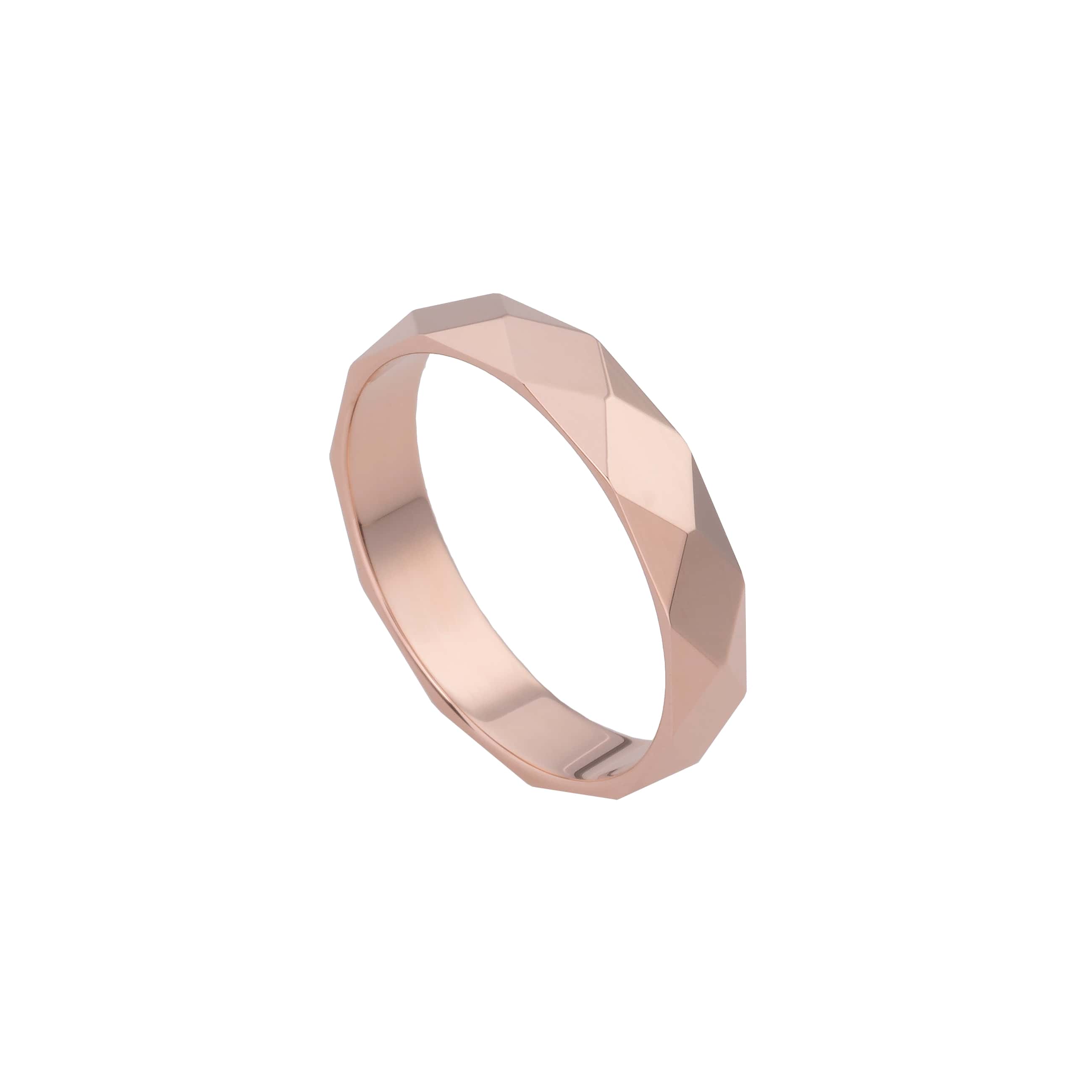 De trouwring van Atelier P met de referentie AP R 001 4 R uit de Pierre collectie is een roségouden 18 karaat trouwring. De ring is afgewerkt met geslepen facetjes. De breedte van de ring is 4mm, maar 2 en 6mm is eveneens mogelijk.