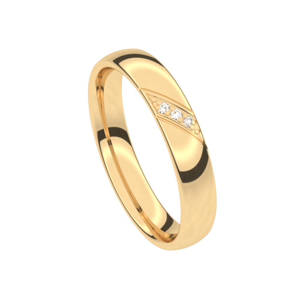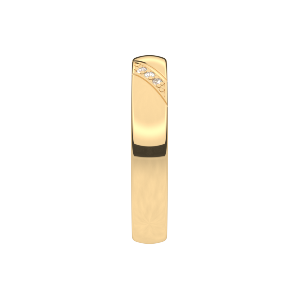 Deze trouwring 6T160JG/40 uit de Traditions collectie is een geelgouden hoog glanzende trouwring in 18 karaat goud (maar ook verkrijgbaar in 9 en 14 karaat goud). De trouwring heeft een zacht bolle boord van 40 mm breedte en een dikte van 1.6mm. De trouwring is gezet met 3 briljantjes van diamant 0,008 ct (zetting J - griffen).