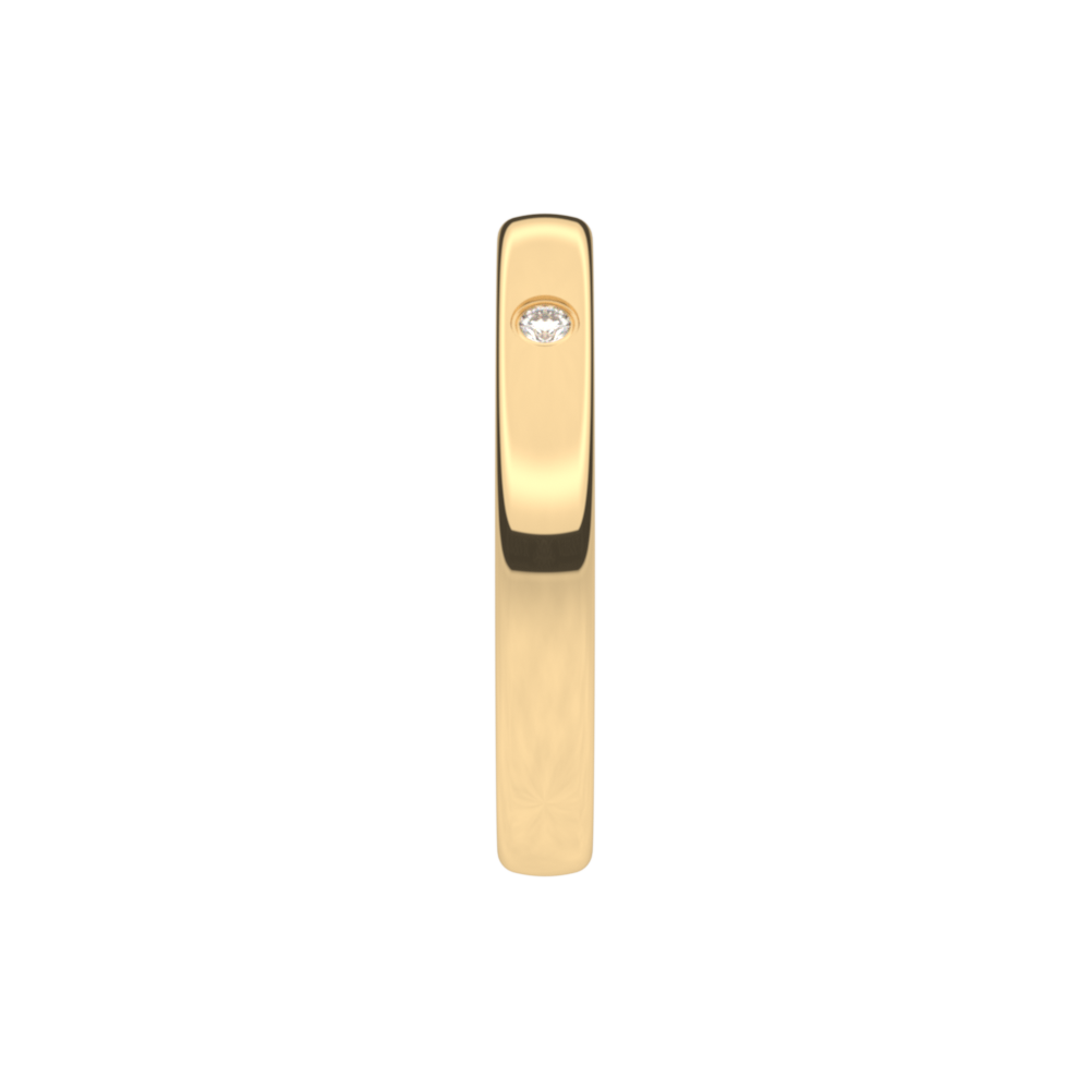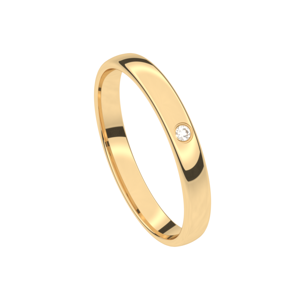 Deze trouwring 7T120AG/30 uit de Traditions collectie is een geelgouden hoogglanzende trouwring in 18 karaat goud (maar ook verkrijgbaar in 9 en 14 karaat goud). De trouwring heeft een zacht bolle boord van 30 mm breedte en een dikte van 1.2mm. De trouwring is gezet met 1 briljant van Diamant 0,020 ct (zetting A - griffen).