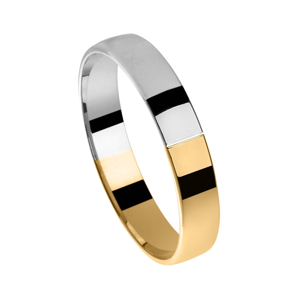 Deze trouwring of vriendschapsring 5720-B/40 uit de Amici collectie is een bicolor gouden 18 karaat trouwring in hoogglans afwerking en heeft een boord van 4 mm diameter.