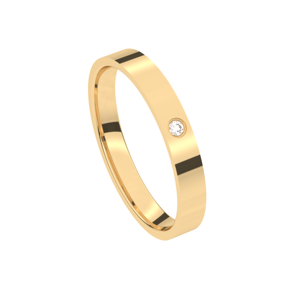 Deze trouwring 8T120AG/30 uit de Traditions collectie is een geelgouden hoog glanzende trouwring in 18 karaat goud (maar ook verkrijgbaar in 9 en 14 karaat goud). De trouwring heeft een zacht bolle boord van 3 mm breedte en een dikte van 1.2 mm. De trouwring is gezet met een briljant van Diamant 0,020ct (zetting A).