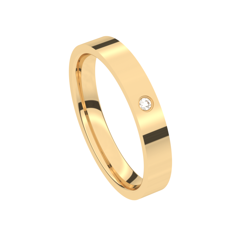 Deze trouwring 8T160AG/35 uit de Traditions collectie is een geelgouden hoog glanzende trouwring in 18 karaat goud (maar ook verkrijgbaar in 9 en 14 karaat goud). De trouwring heeft een zacht bolle boord van 3.5 mm breedte en een dikte van 1.6 mm. De trouwring is gezet met een briljant van Diamant 0,020ct (zetting A).